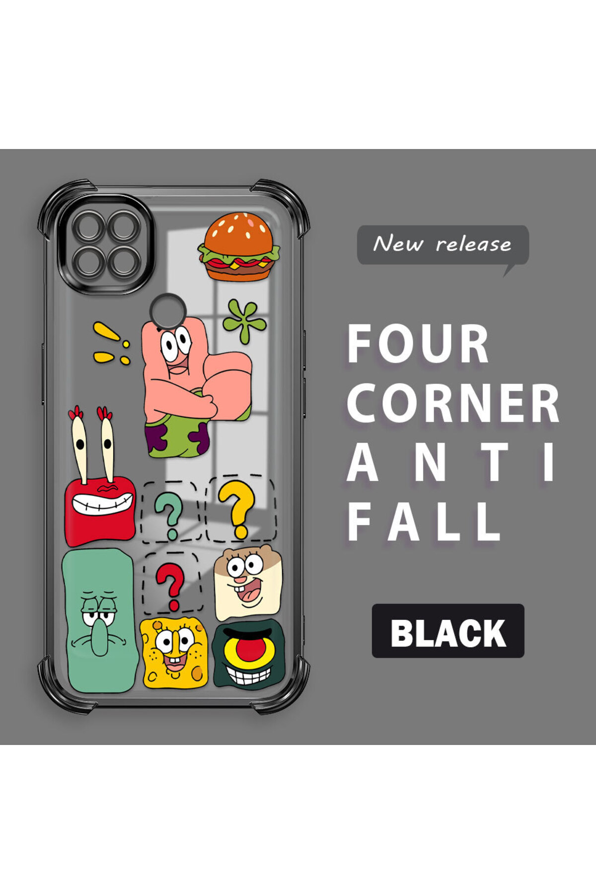 ميزات حافظة حماية من السيليكون الشفاف المتوافقة مع هاتف Redmi 10A، سبونج بوب من ucuc