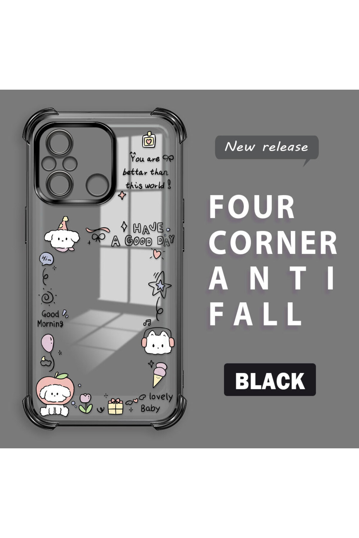 ميزات حافظة حماية من السيليكون الشفاف المتوافقة مع Redmi 12C، نمط إبداعي من ucuc