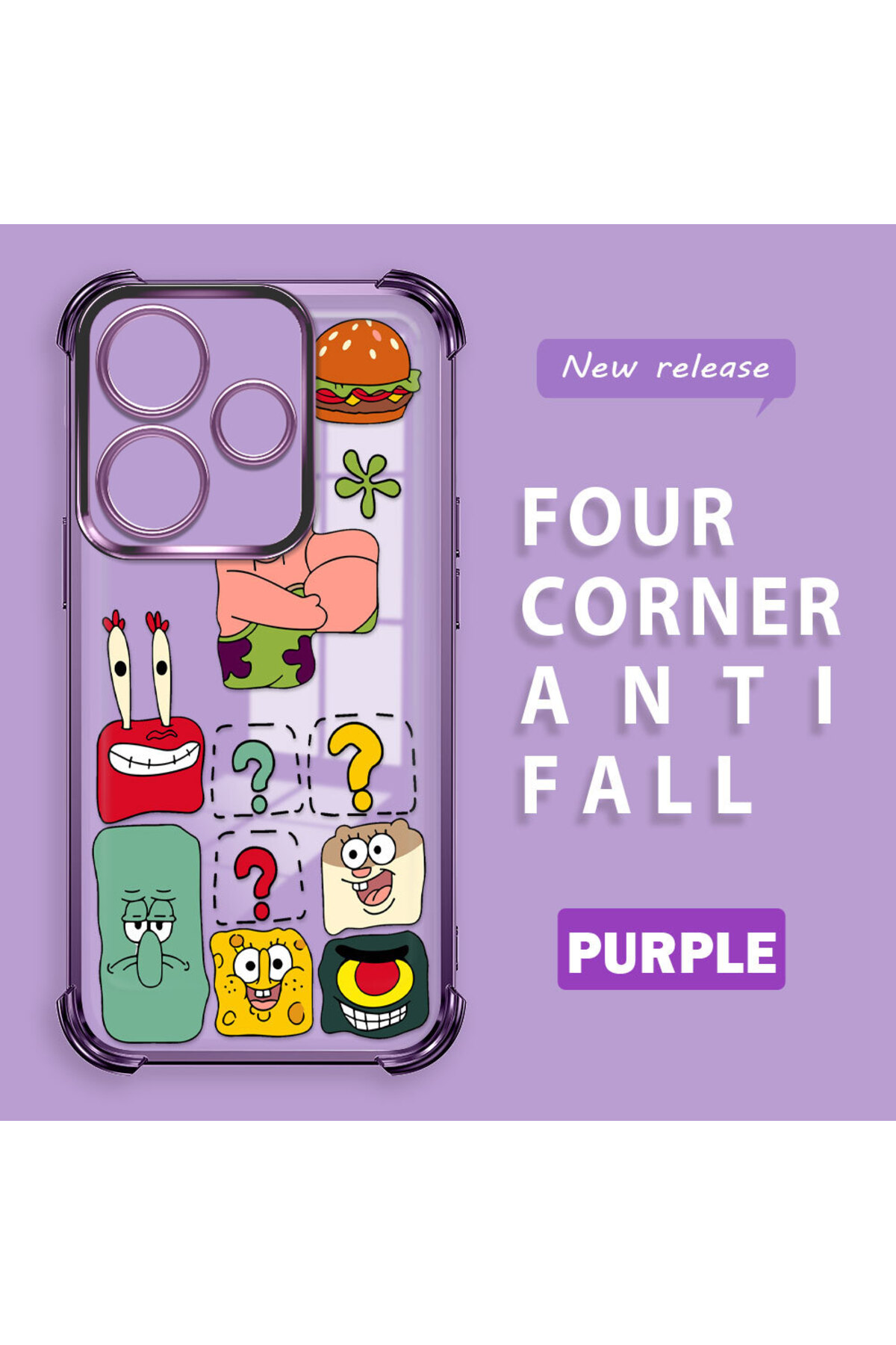 ميزات حافظة حماية من السيليكون الشفاف المتوافقة مع هاتف Redmi 13، سبونج بوب من ucuc
