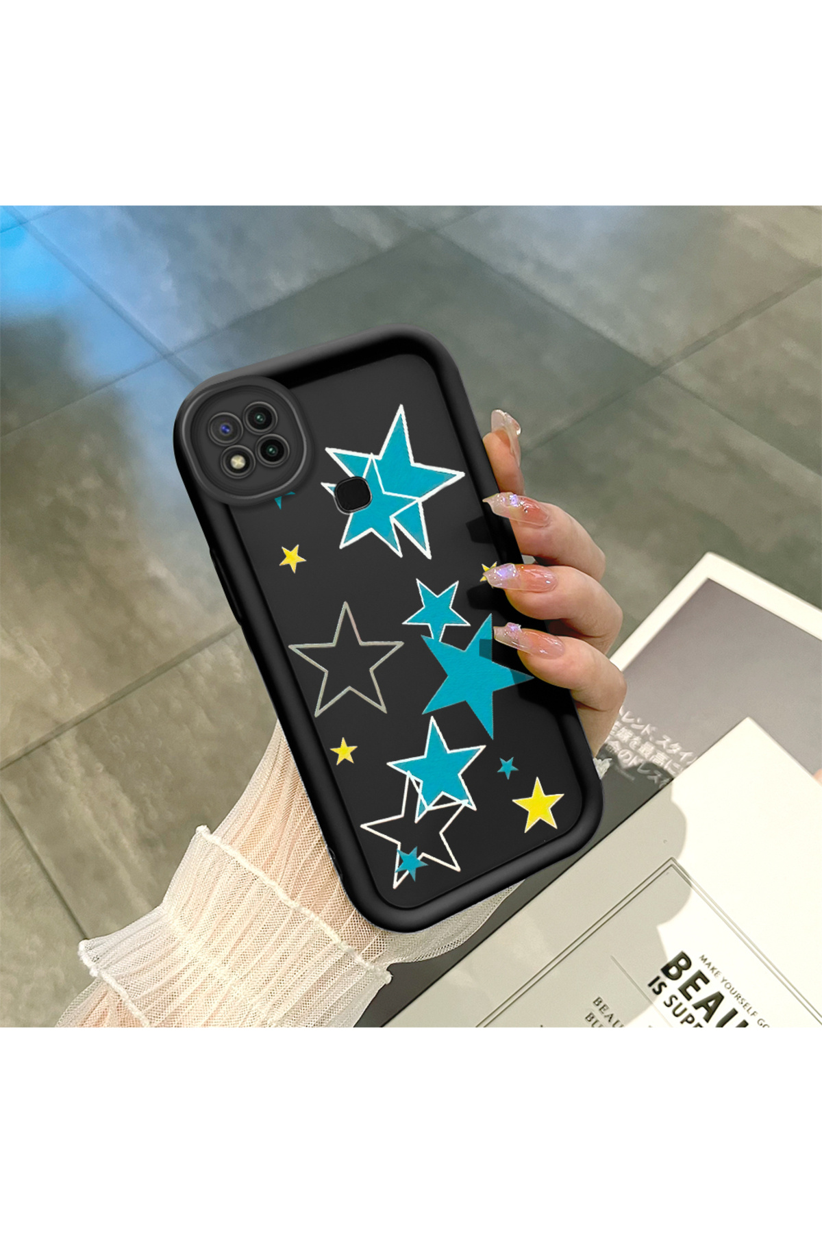 ميزات حافظة متوافقة مع هاتف Redmi 9C مصنوعة من مادة السيليكون المقاومة للصدمات باللون الأسود ونمط النجوم من ucuc