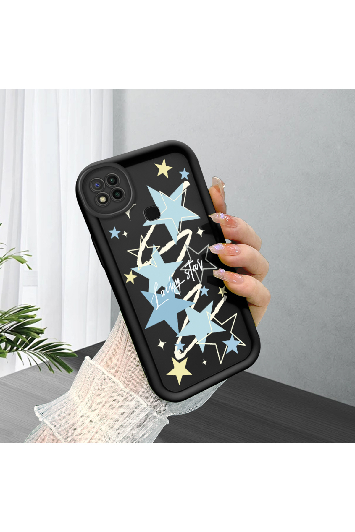 ucuc حافظة متوافقة مع هاتف Redmi 9C مصنوعة من مادة السيليكون المقاومة للصدمات باللون الأسود ونمط النجوم