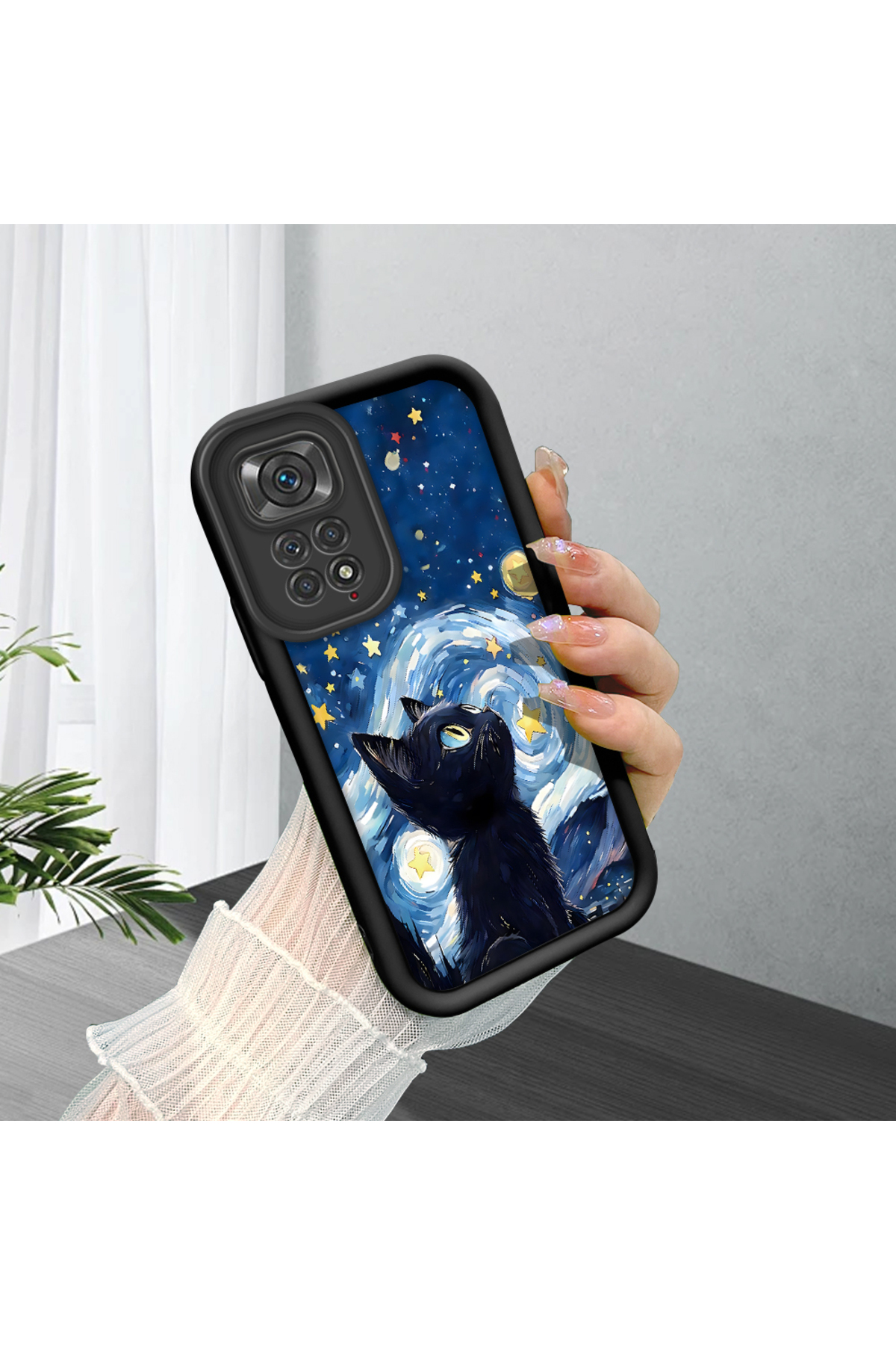 ميزات حافظة متوافقة مع هاتف Redmi Note 11S مصنوعة من مادة السيليكون المقاومة للصدمات باللون الأسود ونمط القطط من ucuc