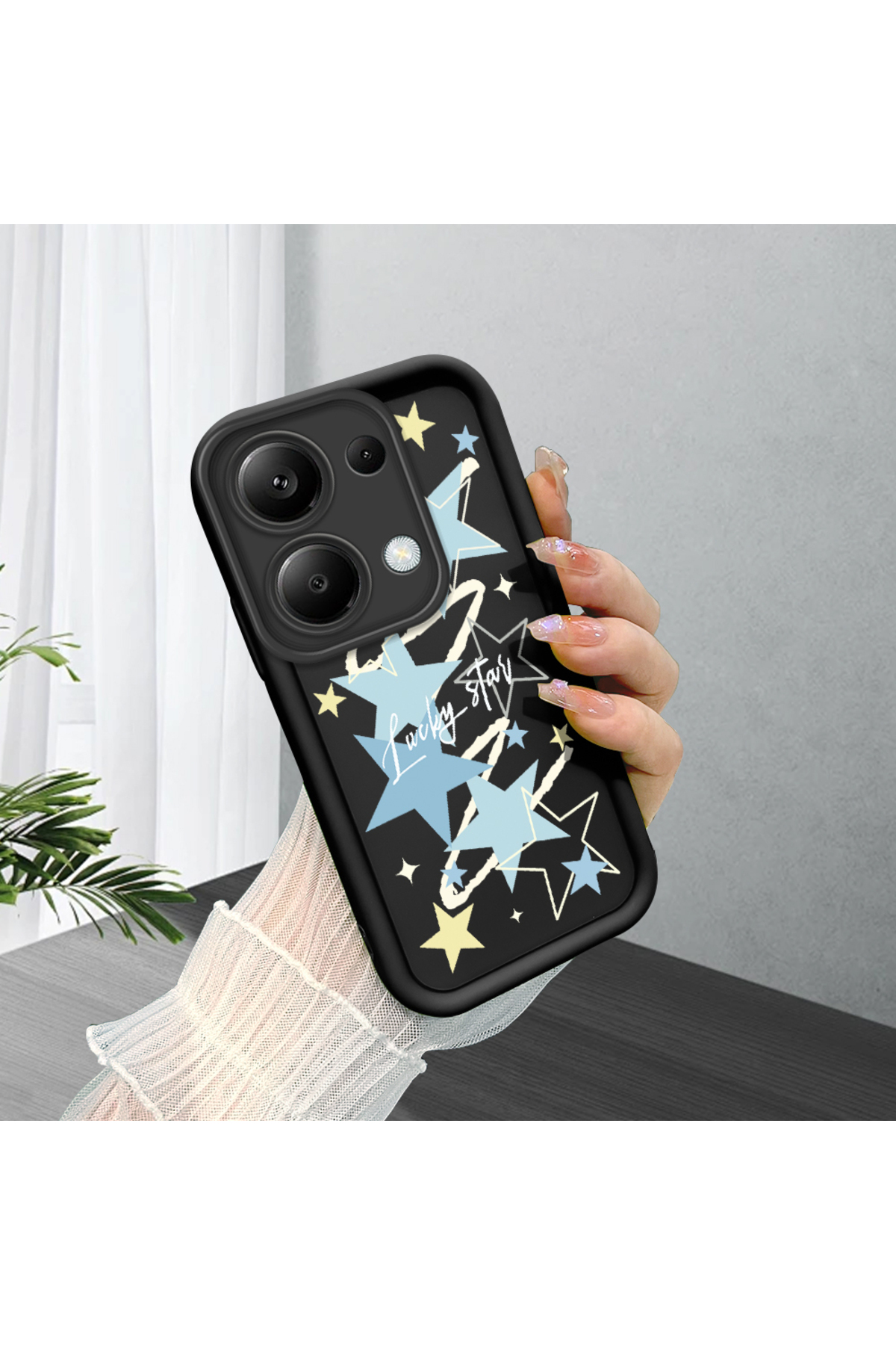 ucuc حافظة من السيليكون متوافقة مع هاتف Redmi Note 14S، مقاومة للصدمات، باللون الأسود، بنمط نجمة.