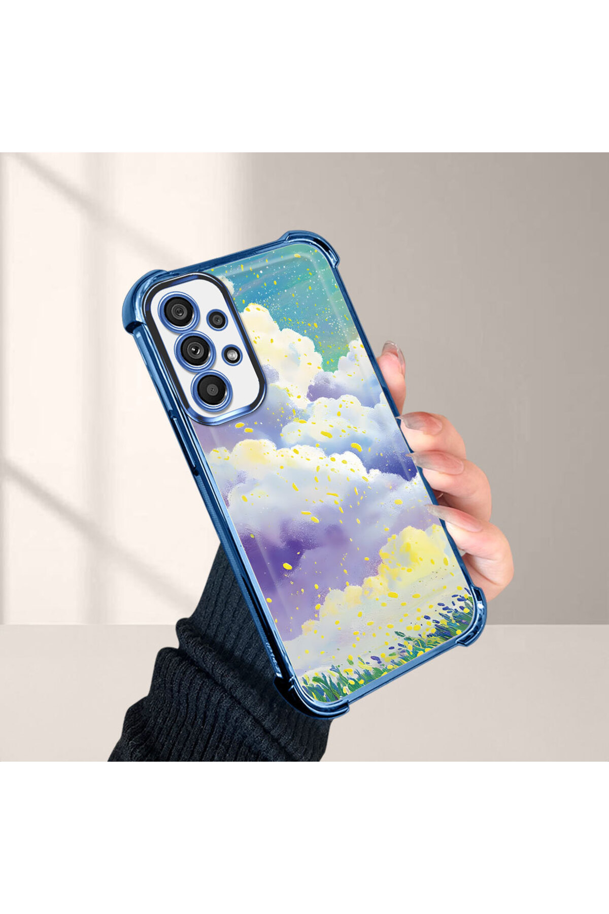 ميزات حافظة حماية من السيليكون الشفاف المتوافقة مع هاتف Samsung Galaxy A73، أنماط سحابية ملونة من ucuc