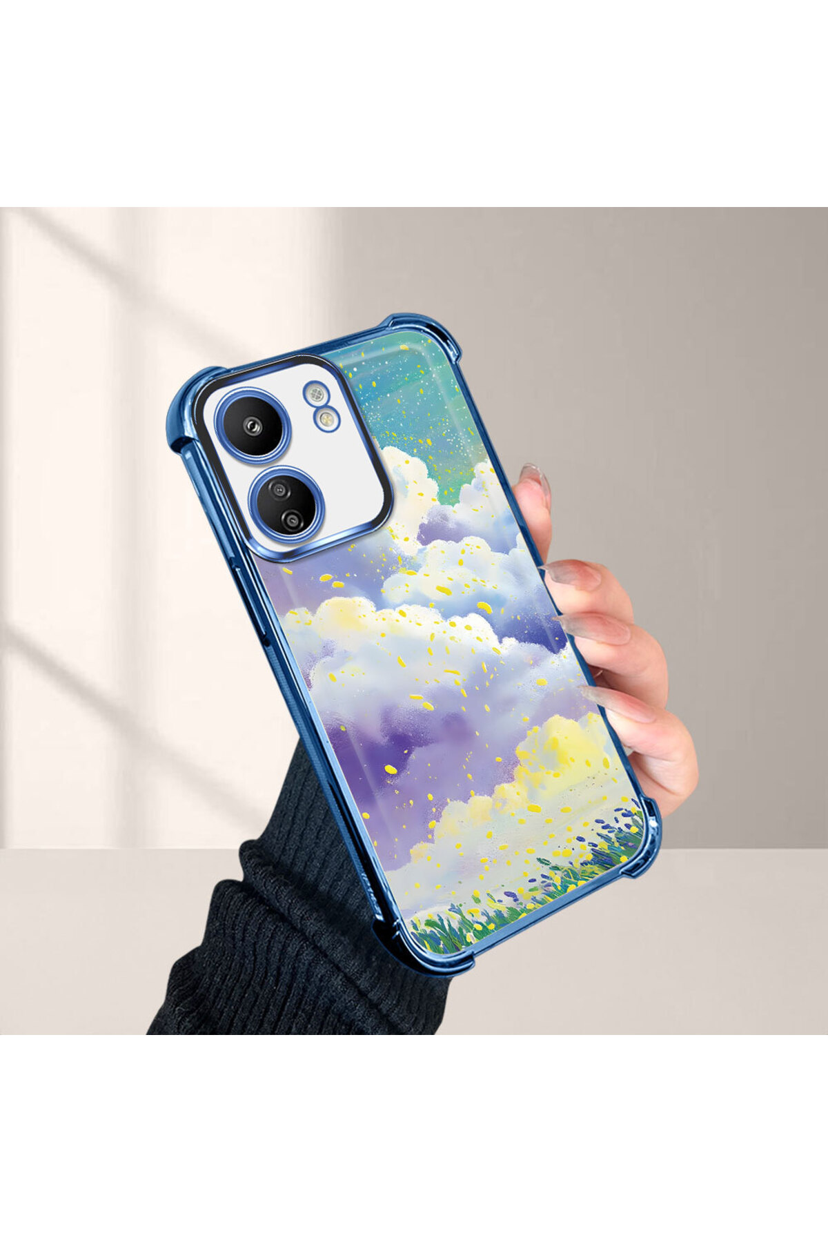 ميزات حافظة حماية من السيليكون الشفاف المتوافقة مع Xiaomi Poco C65 بأنماط سحابية ملونة من ucuc
