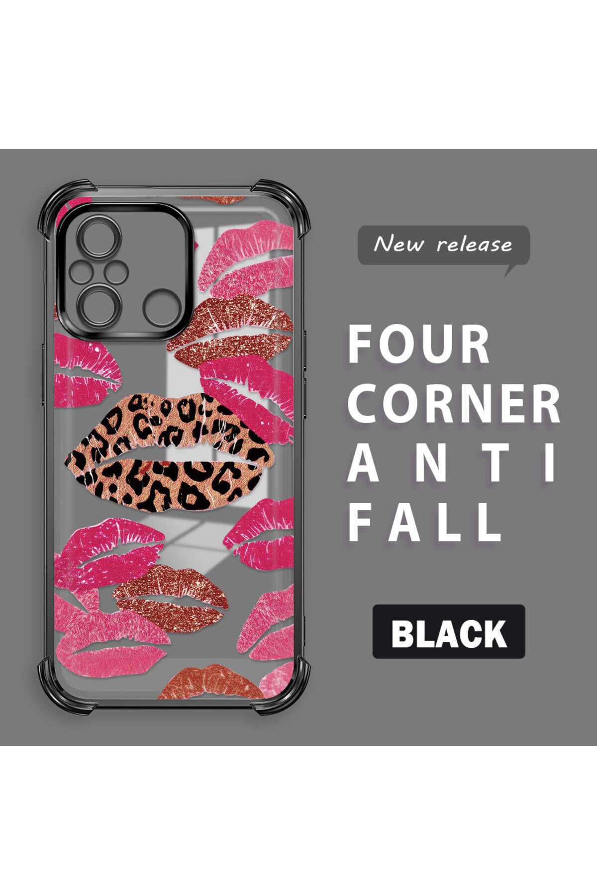 ميزات حافظة حماية من السيليكون الشفاف المتوافقة مع Xiaomi Redmi 12C، بأنماط الشفاه من ucuc