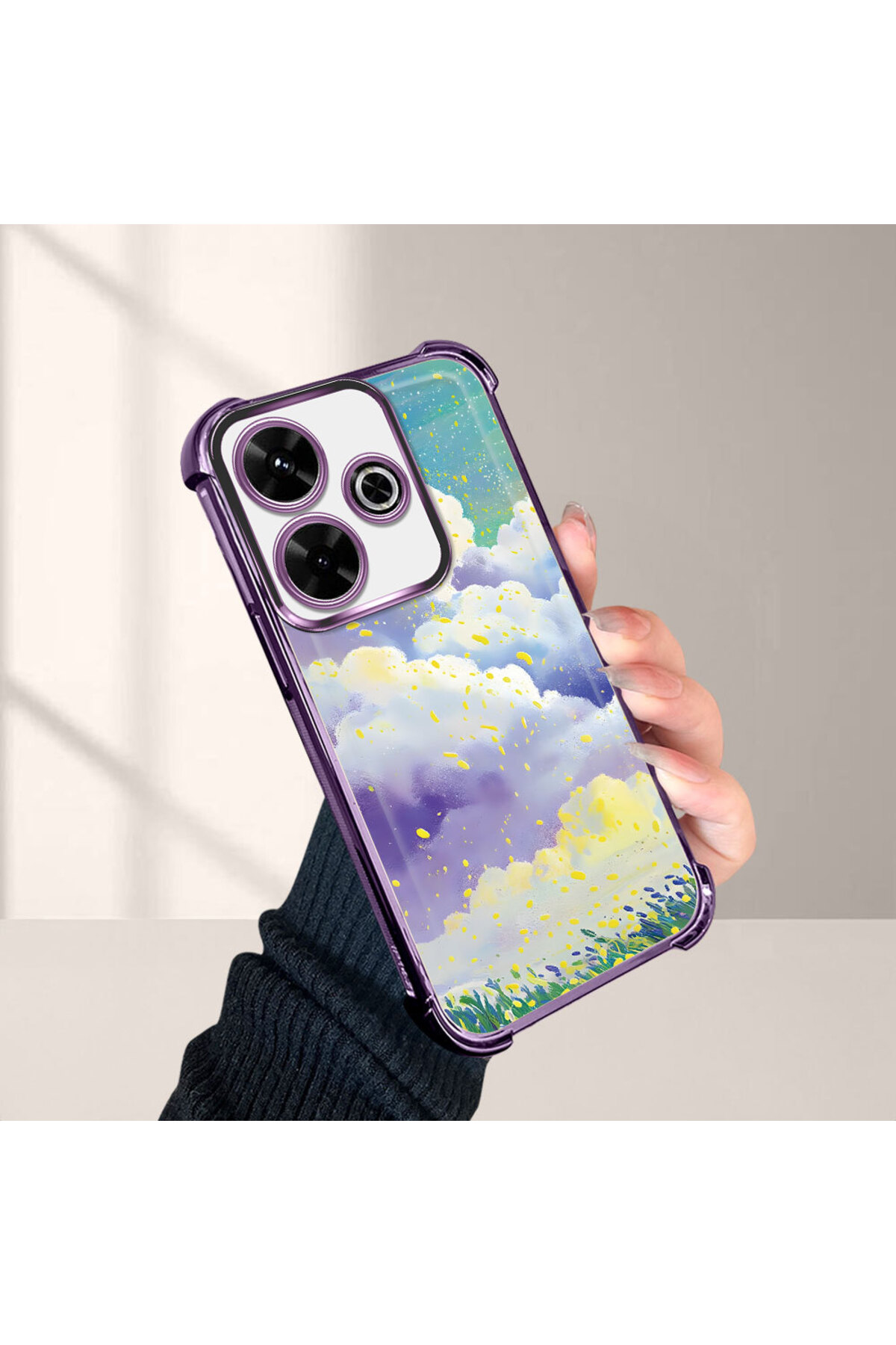 ucuc حافظة حماية من السيليكون الشفاف المتوافقة مع هاتف Xiaomi Redmi 13، أنماط سحابية ملونة