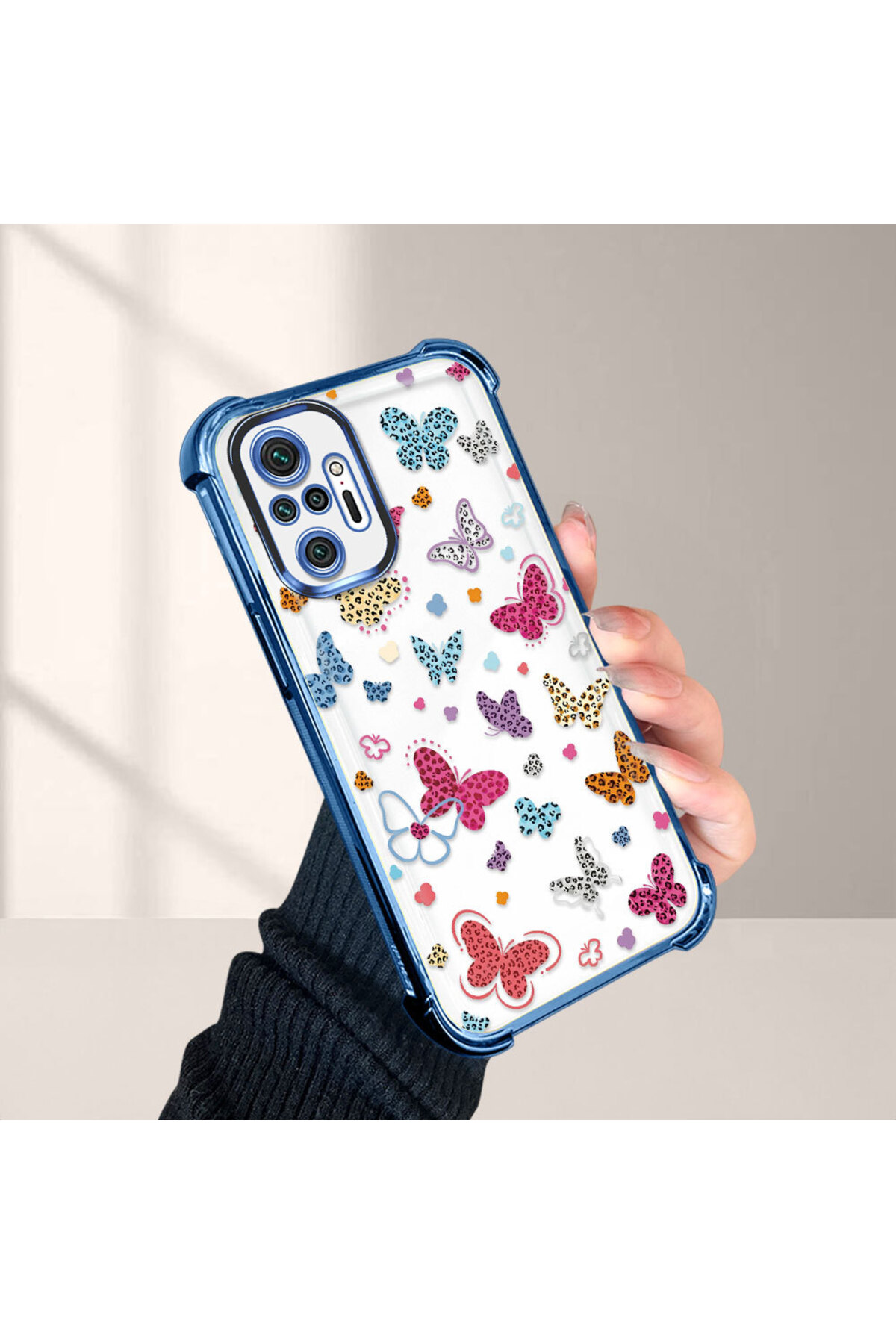 ميزات حافظة حماية من السيليكون الشفاف المتوافقة مع هاتف Xiaomi Redmi Note 10 Pro، بأنماط الفراشة من ucuc