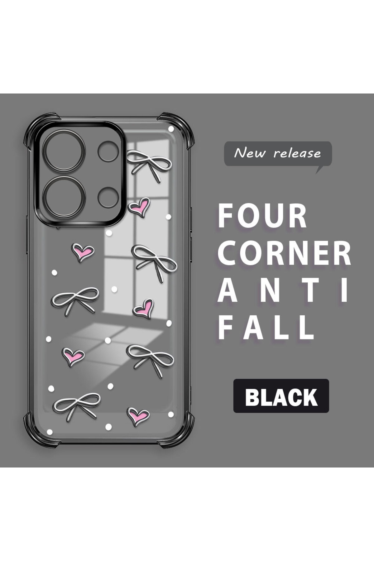 ميزات حافظة حماية من السيليكون الشفاف المتوافقة مع هاتف Xiaomi Redmi Note 13 بأنماط قلب من ucuc