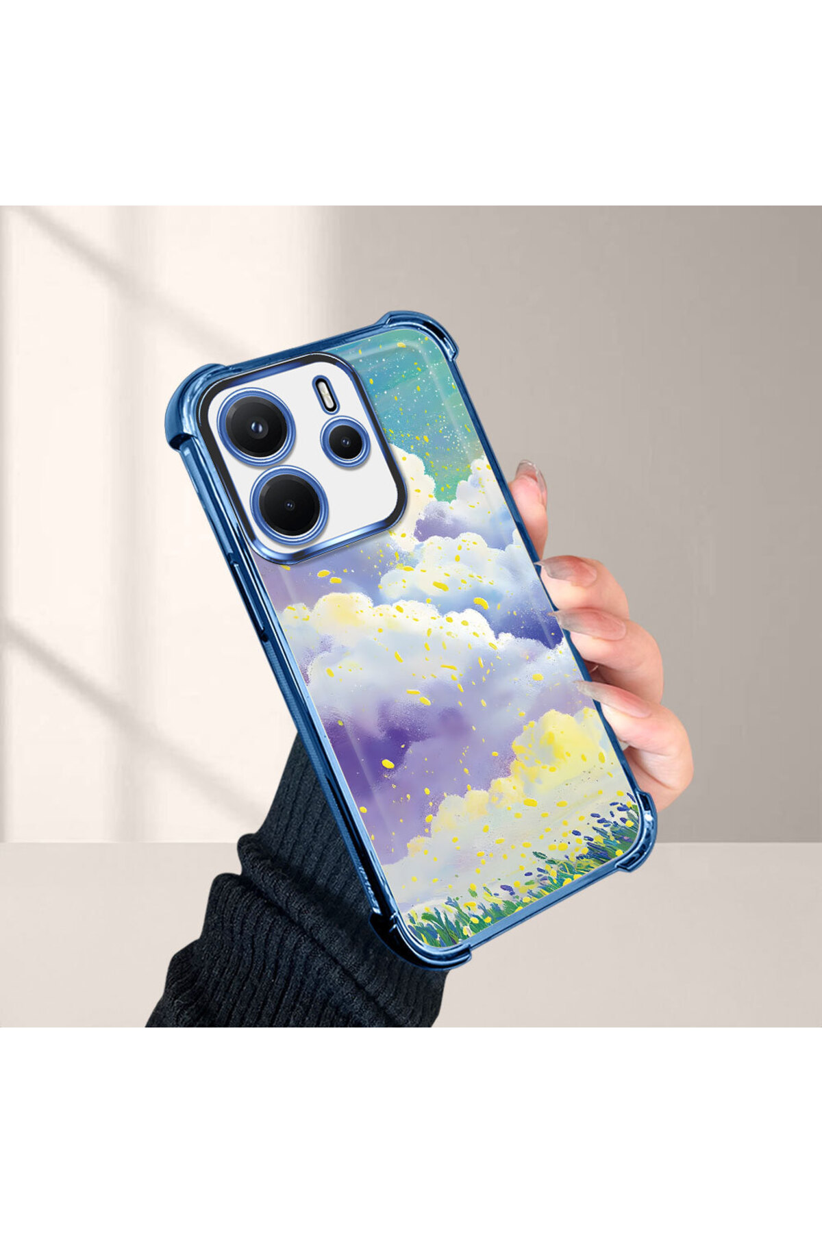 ucuc حافظة حماية من السيليكون الشفاف المتوافقة مع هاتف Xiaomi Redmi Note 14، أنماط سحابية ملونة