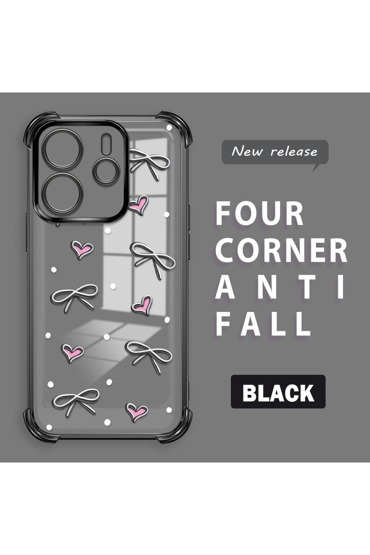 ميزات حافظة حماية من السيليكون الشفاف المتوافقة مع هاتف Xiaomi Redmi Note 14 بأنماط قلب من ucuc