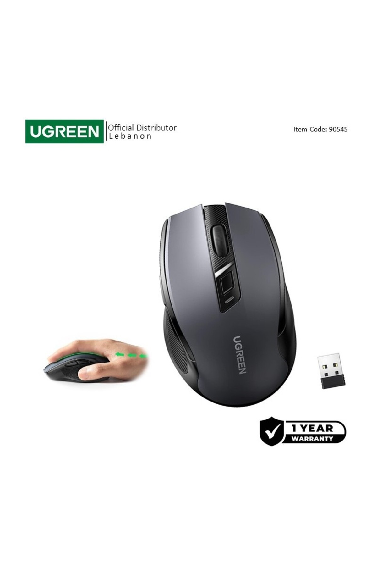 ميزات ماوس لاسلكي مريح، رمادي داكن من Ugreen