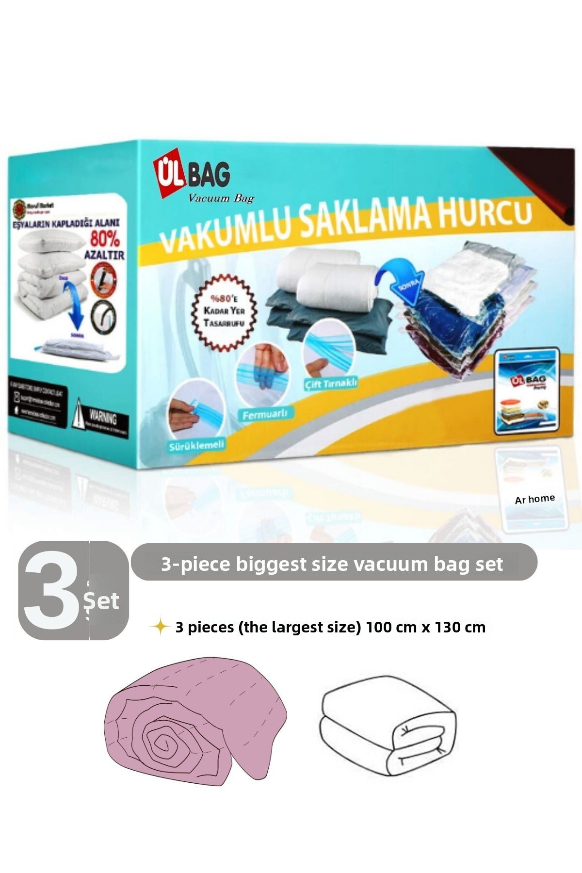 ÜLBAG (3 قطع) (الحجم الأكبر) 100 سم × 130 سم (لحاف وتنجيد) كيس مفرغ من الهواء - كيس مفرغ من الهواء - كيس مفرغ من الهواء