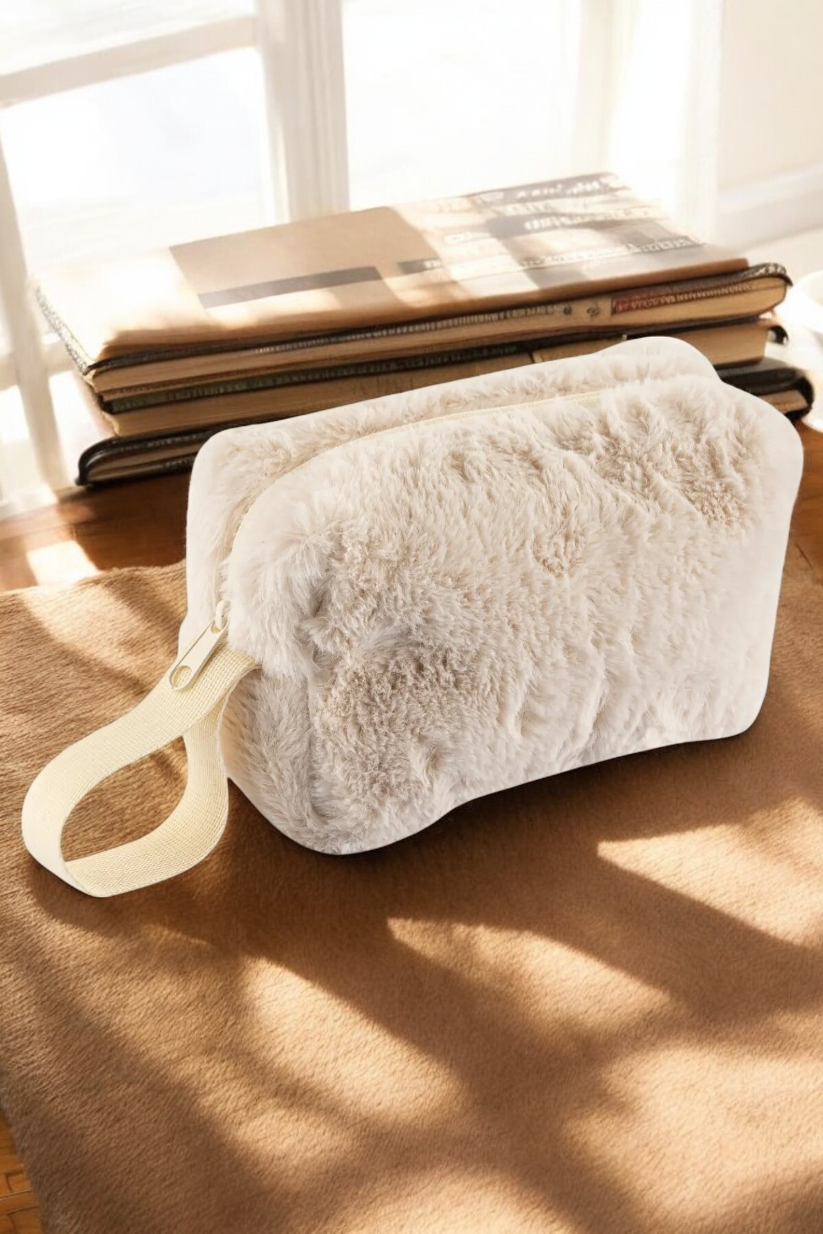 Umbell حقيبة مكياج بيج قطيفة