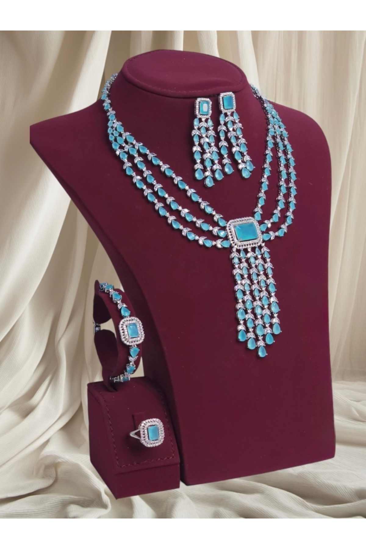 رشادات العناية بالمنتج: • يُحفظ الطقم داخل العلبة المخصّصة بعد الاستخدام. • يُنظَّف بقطعة قماش ناعمة وجافة فقط. • يُفضّل تجنّب ملامسة العطور والماء والمواد الكيميائية. • يُزال قبل النوم أو الاستحمام للحفاظ على اللمعان.