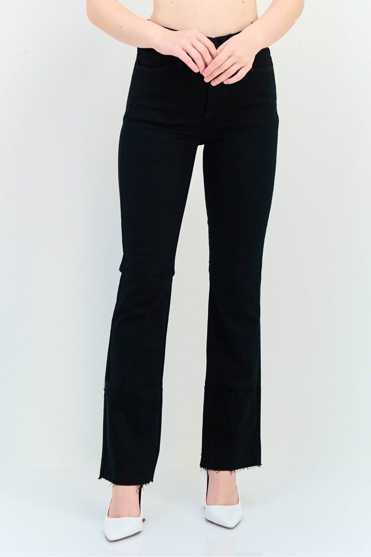 Universal Thread بنطلون جينز نسائي طويل مطاطي بقصّة واسعة، أسود