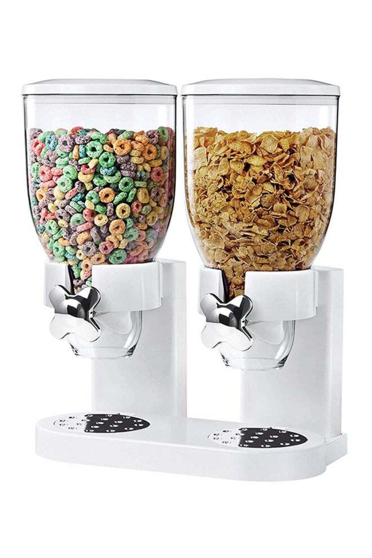 ميزات موزع كورن فليكس الإفطار المزدوج أبيض/شفاف/فضي من Unspecified