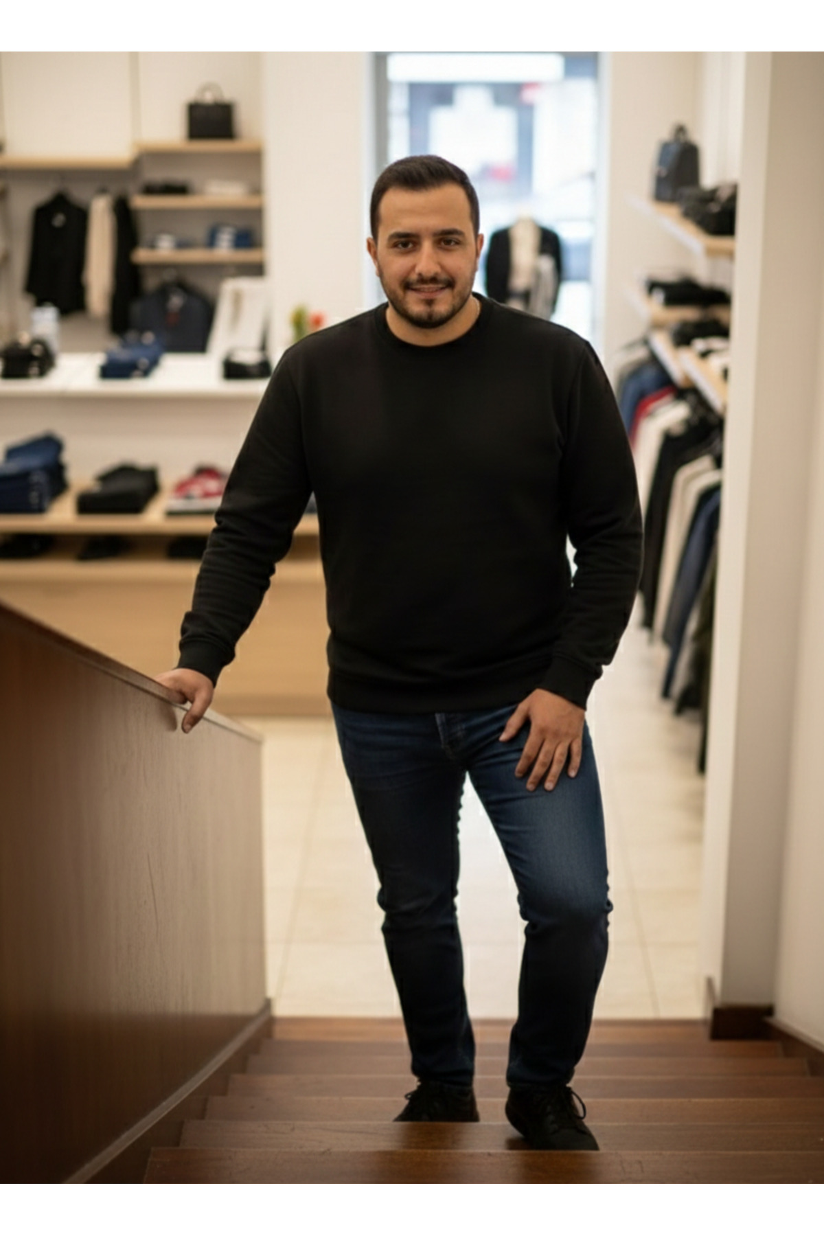 URUMDAY سترة رجالية أساسية بياقة مستديرة وتصميم فضفاض من قماش البيكيه