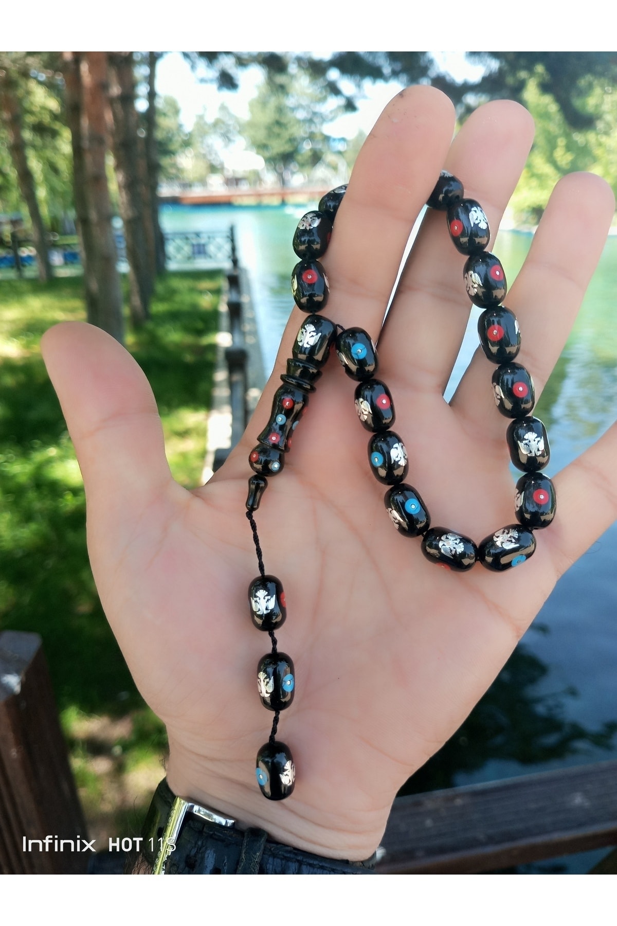 USTATESBİH التميمة مزدوجة الرأس النسر التطريز الأصلي Oltu حجر مسبحة