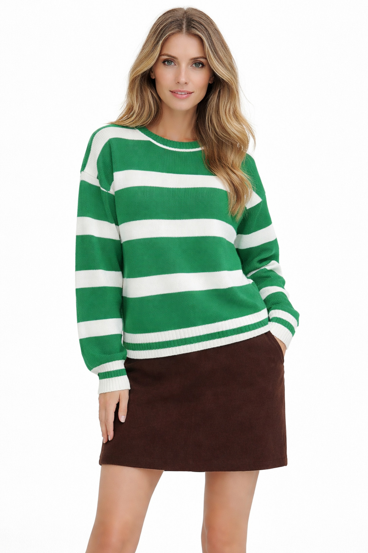 Vaniza سترة تريكو مخططة أساسية بمقاس قياسي