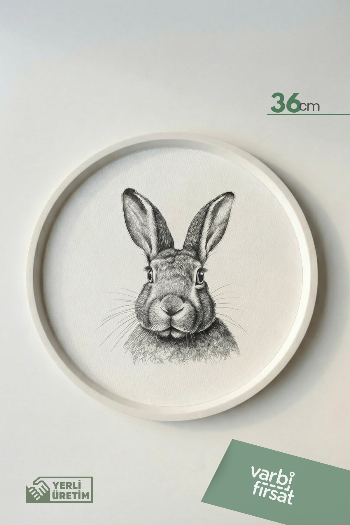 Varbifırsat صينية ديكور دائرية بنقشة أرنب - 36 سم