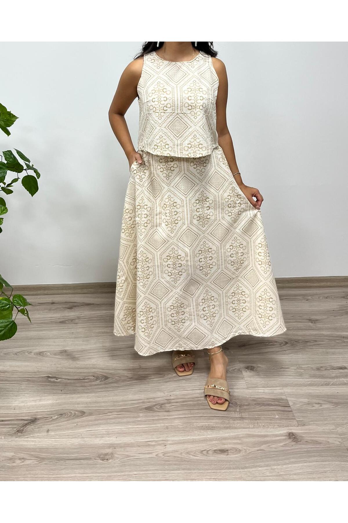 VAZIRADK مجموعة تنورة بلوزة بنمط هندسي