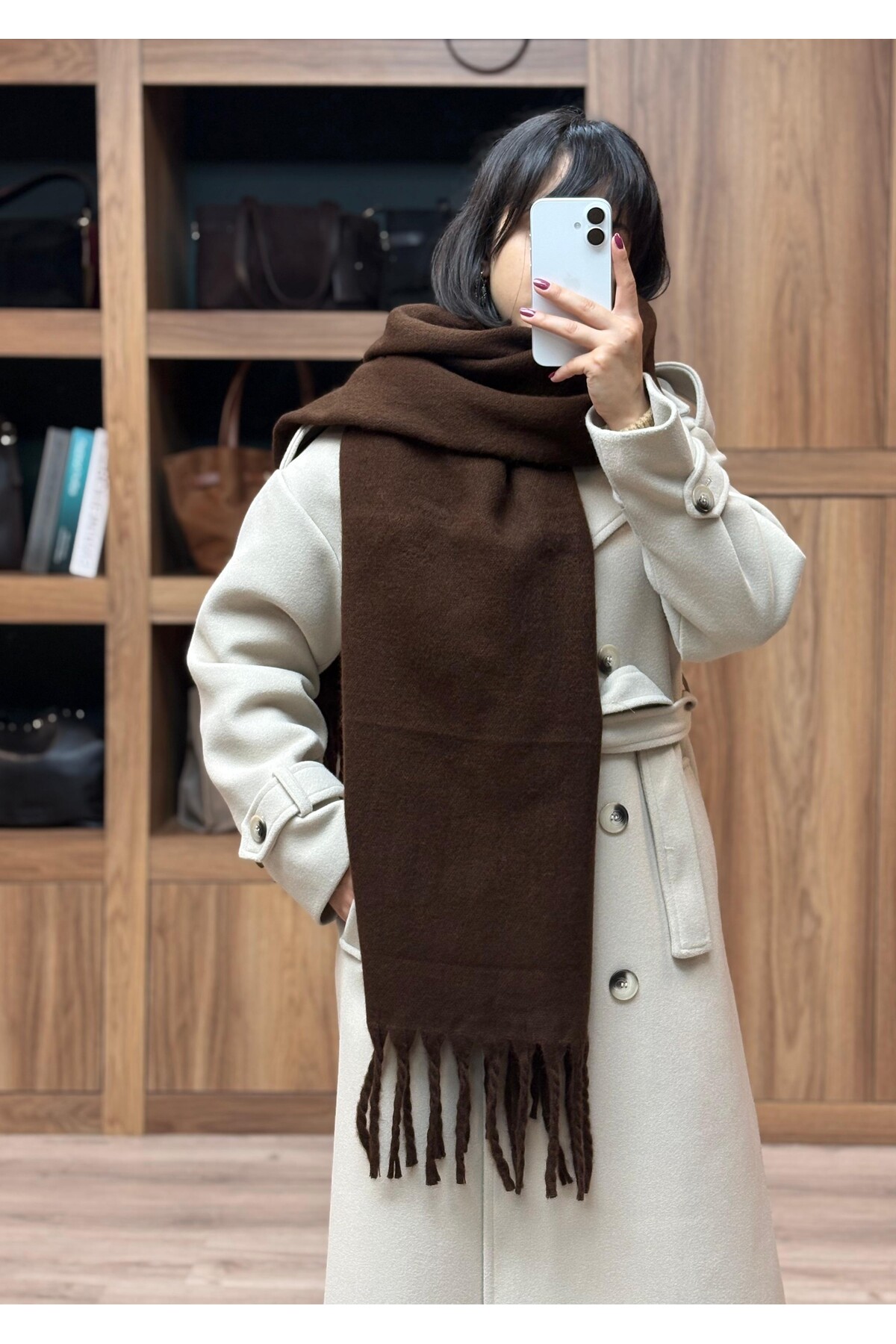 VAZIRADK وشاح ناعم ذو شراشيب بلون واحد