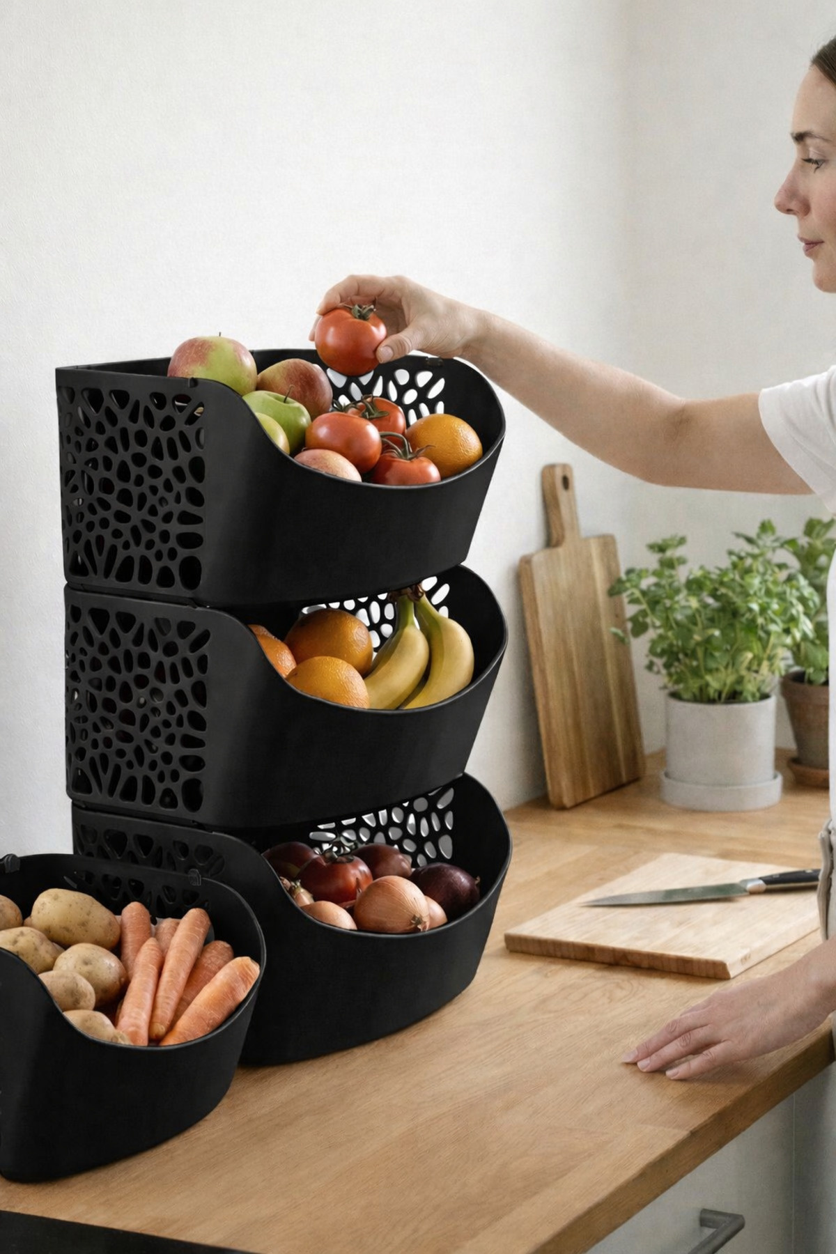 Vescarri حاوية تخزين مطبخ قابلة للتكديس - حاوية تخزين مطبخ معيارية - مصنوعة من البلاستيك النباتي 100%