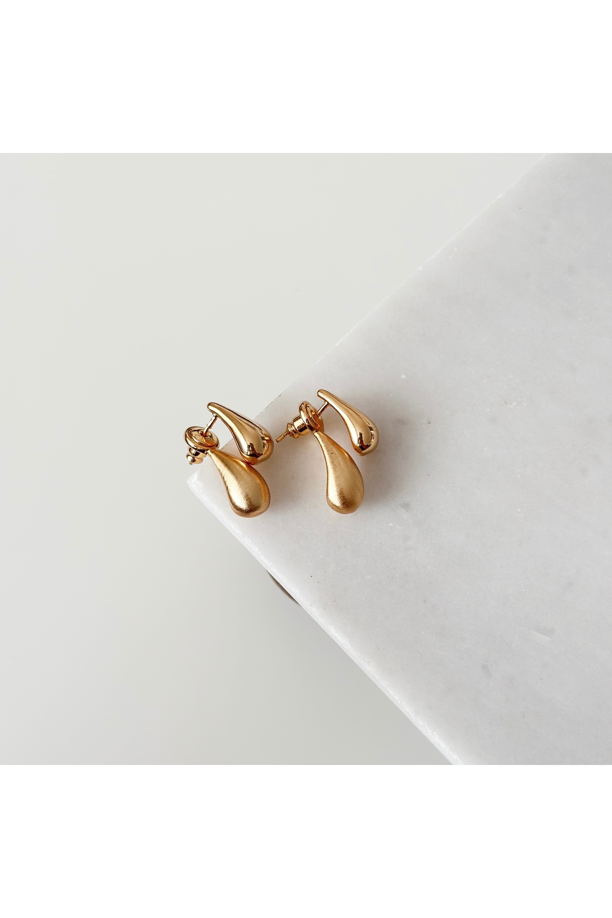ميزات أقراط ذهبية مزدوجة على شكل قطرة من Vesce Atelier