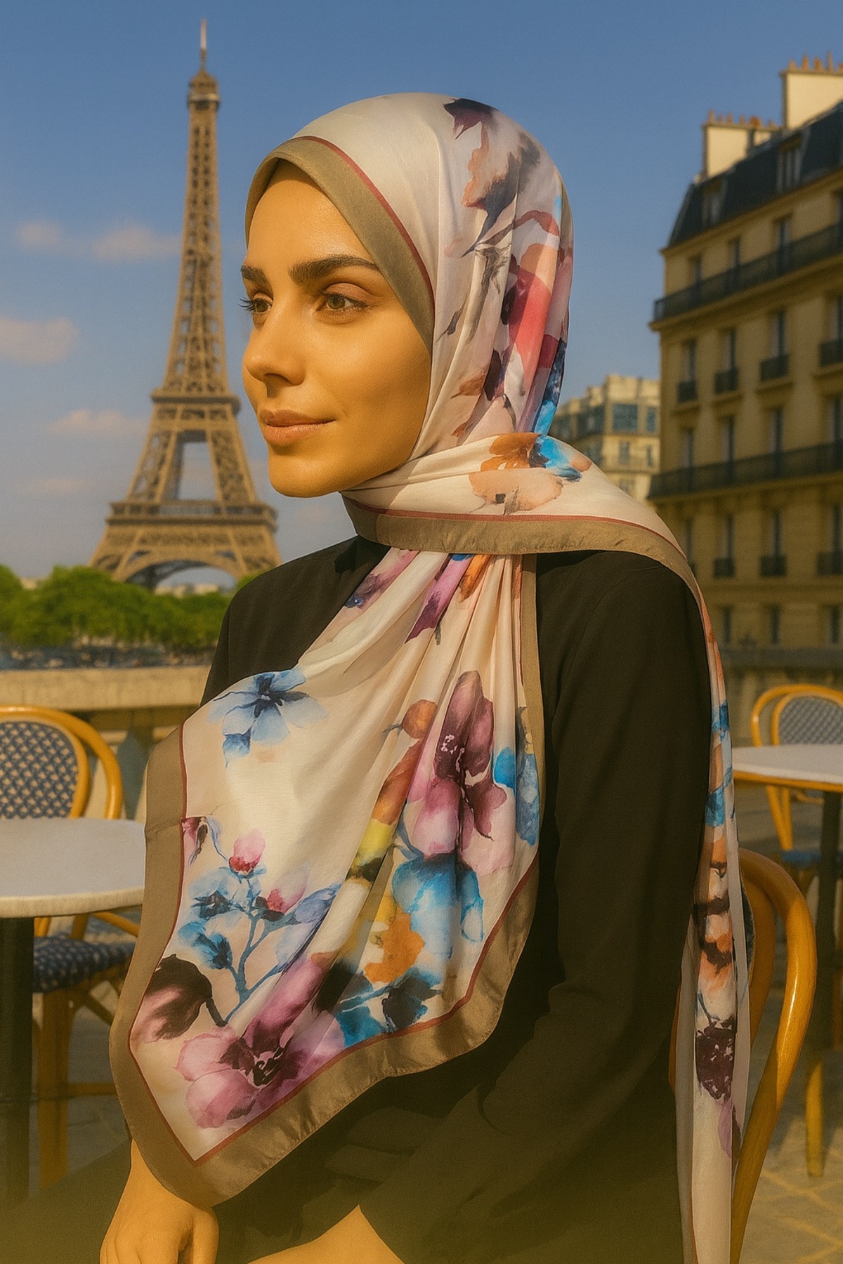 VIEN POLO شال قطني بنمط الورد