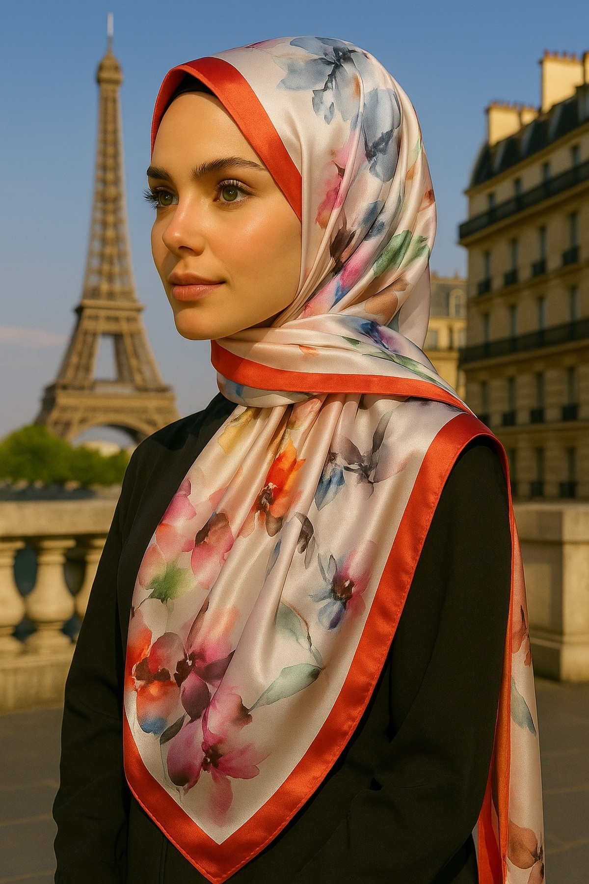 VIEN POLO شال قطني بنمط الورد