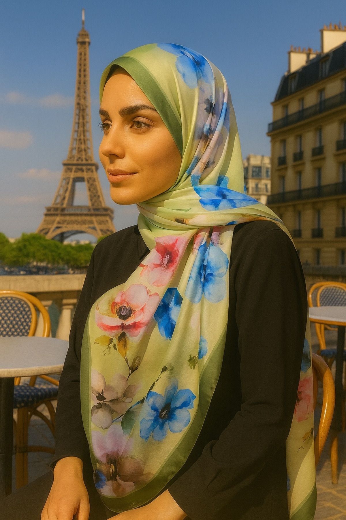 VIEN POLO شال قطني بنمط الورد