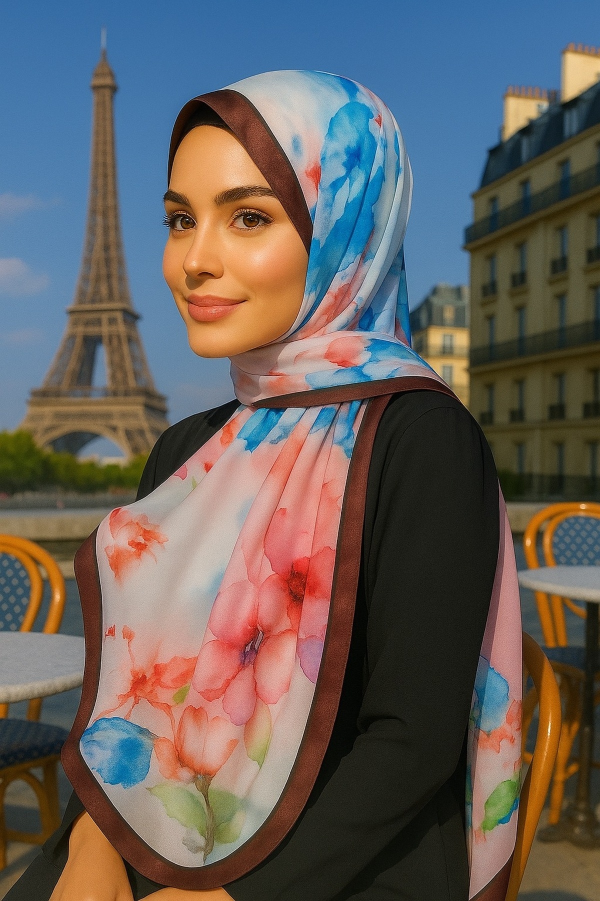VIEN POLO شال قطني بنمط الورد