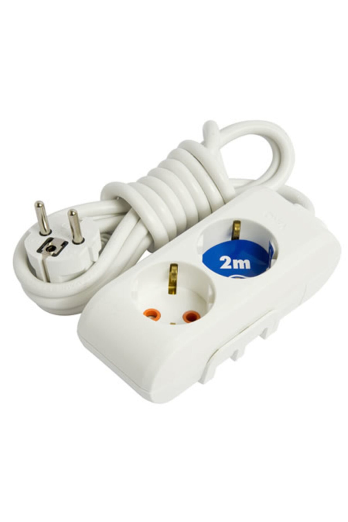 ميزات مقبس مزدوج متعدد الاستخدامات مع كابل أرضي 2 متر أبيض من VİKO