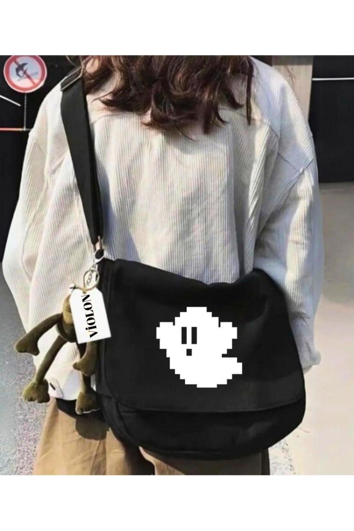 Violon حقيبة ماسنجر سوداء مطبوعة بالشبح