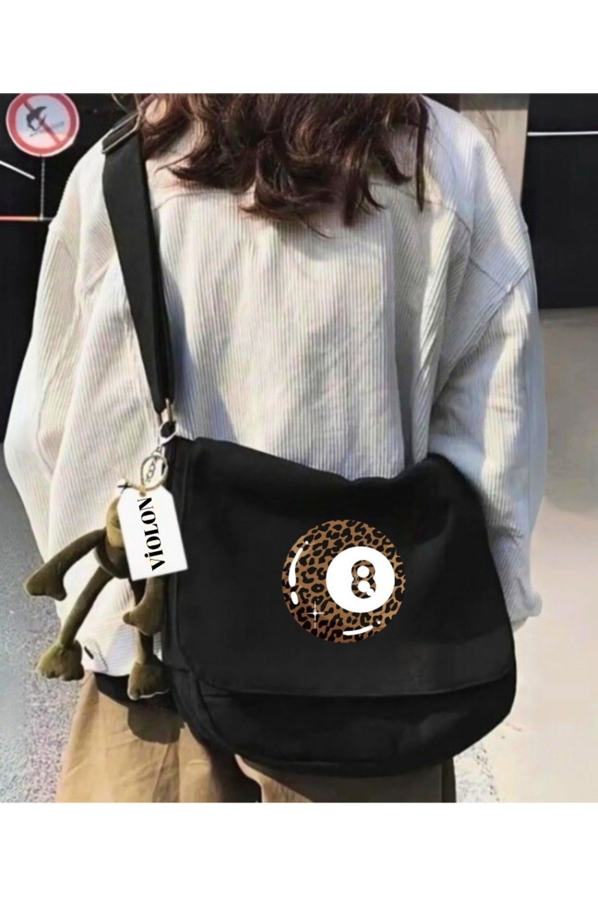 ميزات حقيبة ماسنجر سوداء بنمط الفهد من Violon
