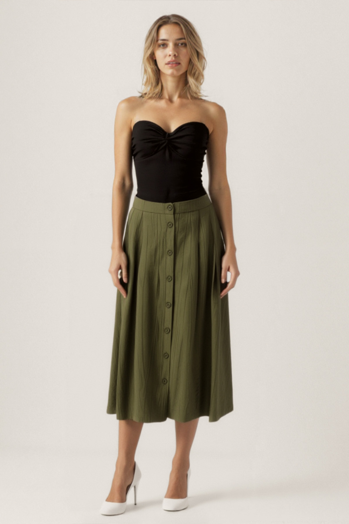 ميزات تنورة ميدي بأزرار أمامية من Vitrin