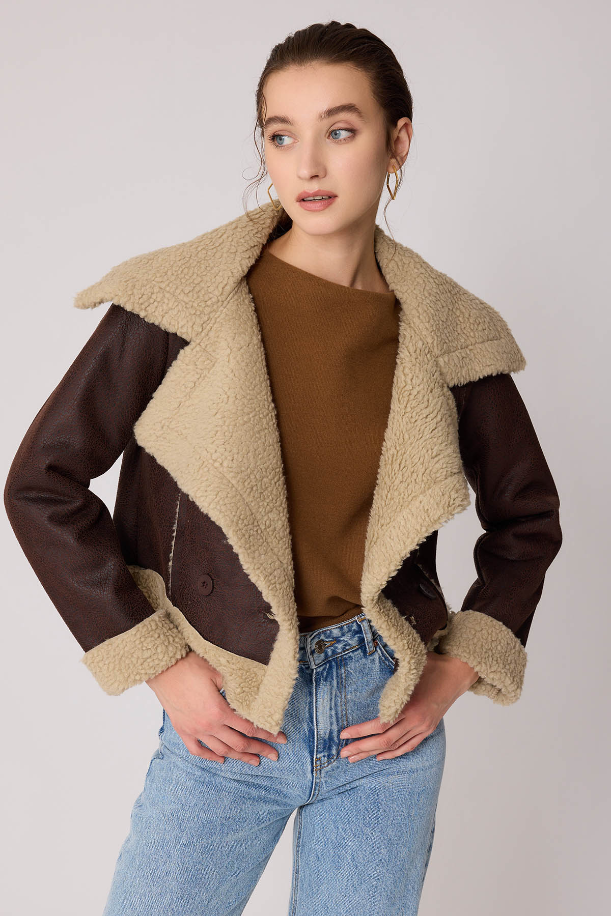 Vitrin سترة راكب الدراجة النارية قصيرة من الفرو بأزرار أمامية