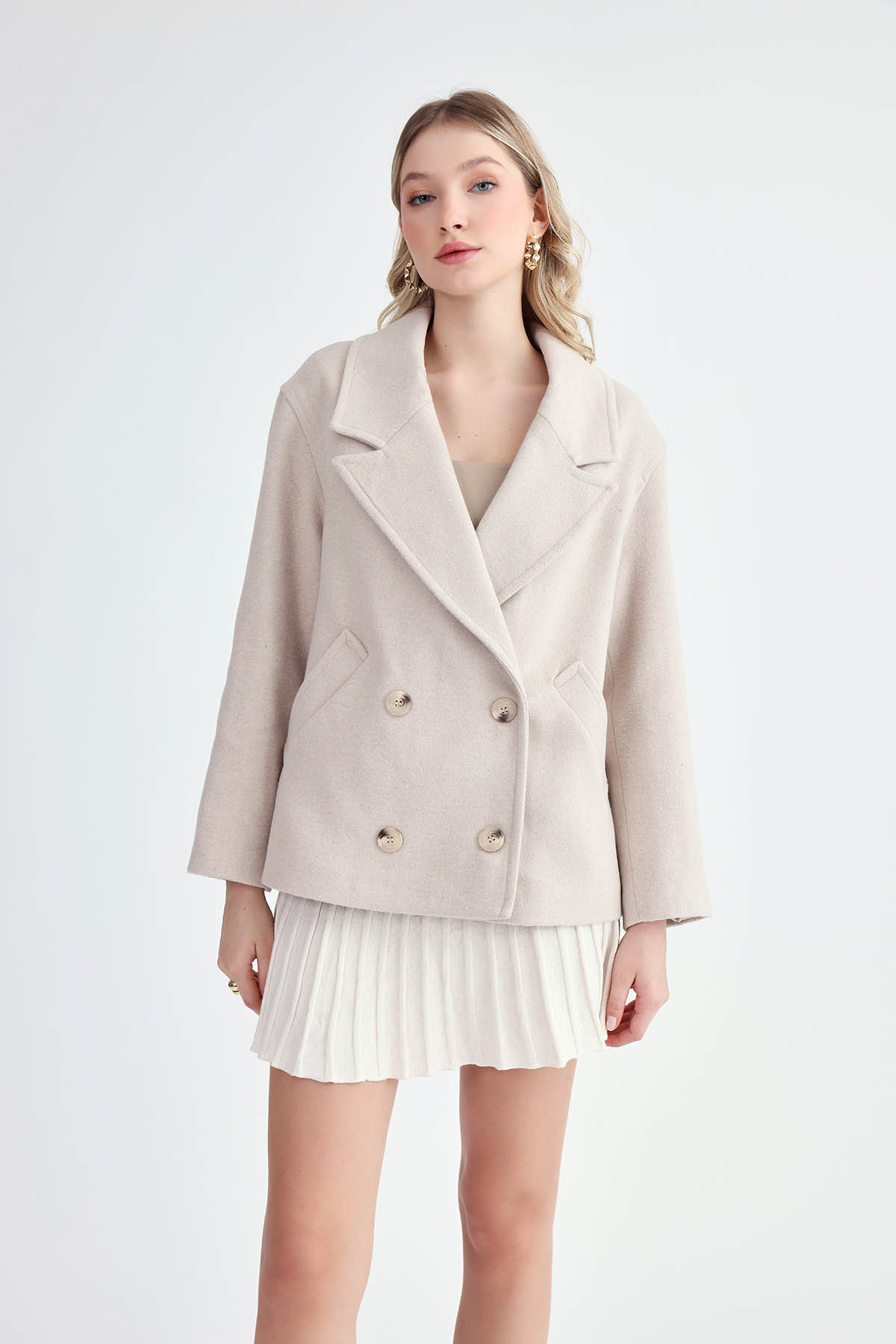 ميزات معطف قصير بأزرار من Vitrin