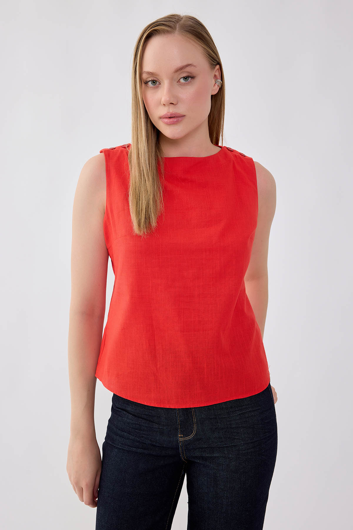 Vitrin بلوزة من الكتان والفسكوز بأزرار على الكتف