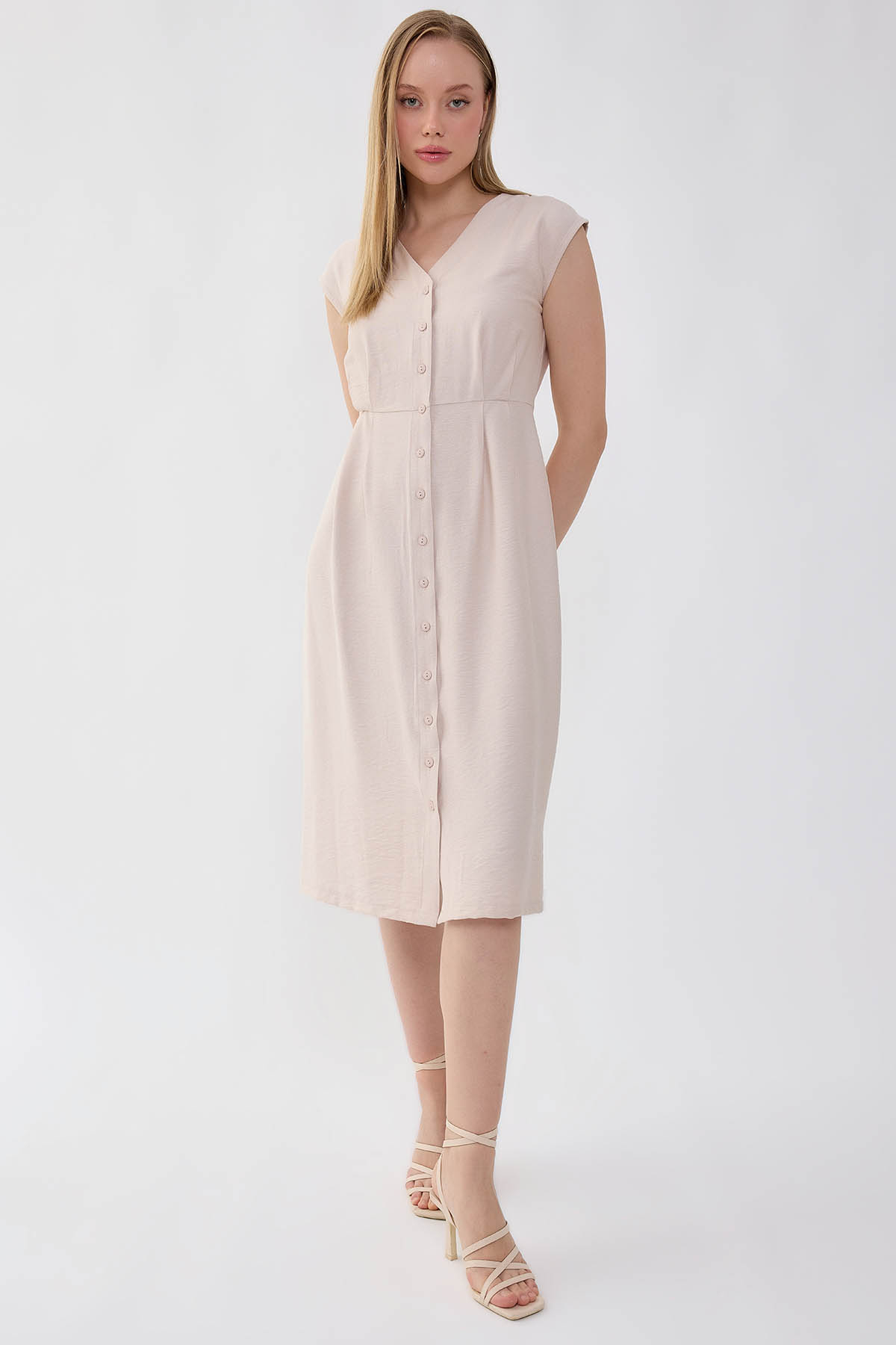 ميزات فستان بياقة على شكل حرف V وأزرار من Vitrin
