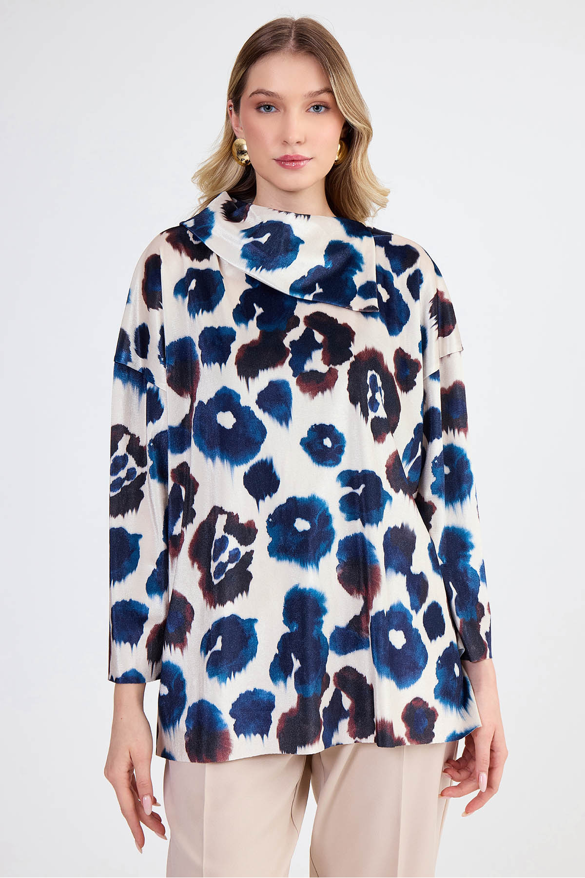 ميزات بلوزة من القماش اللامع برقبة غير متماثلة من Vitrin
