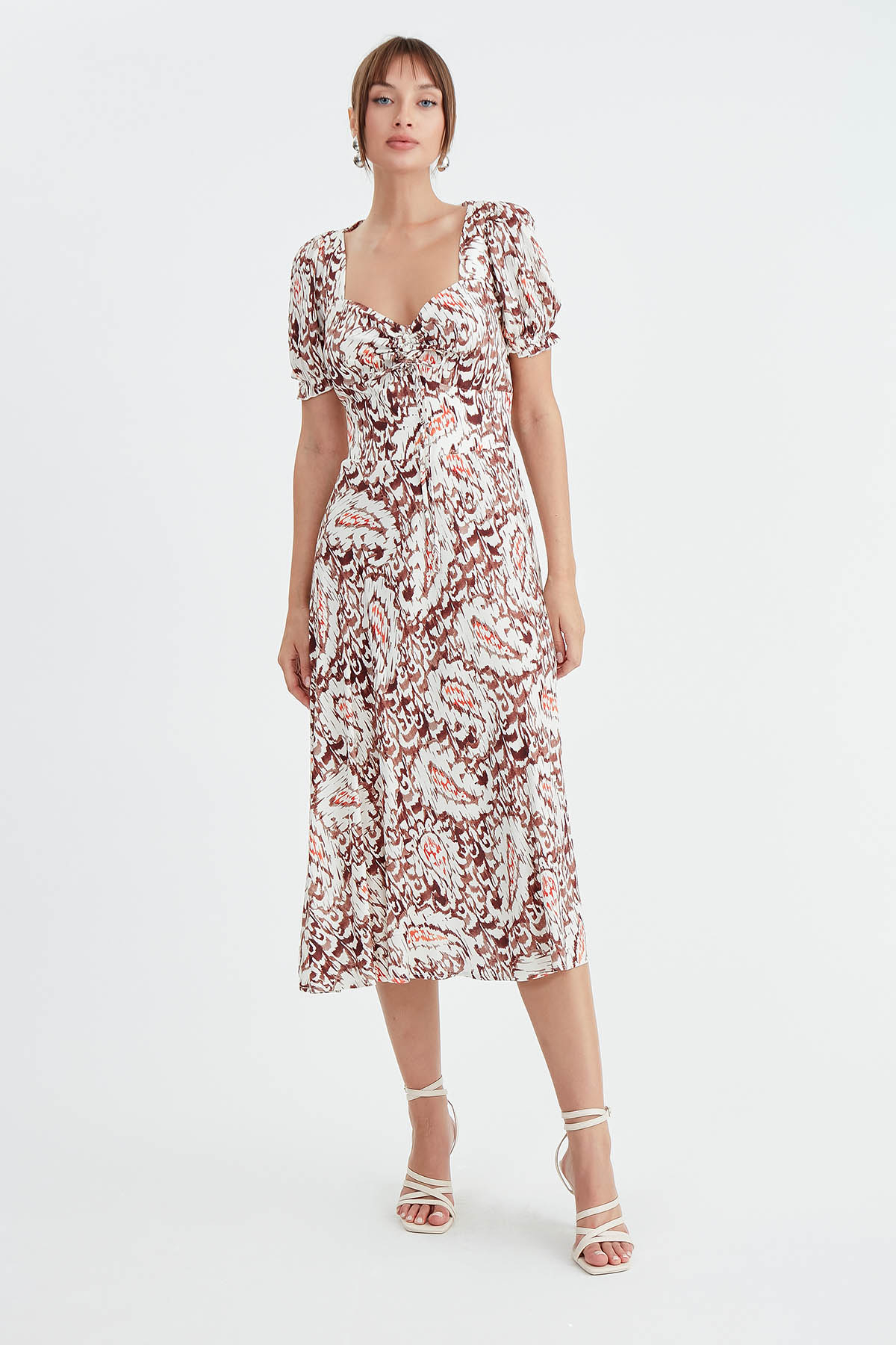 ميزات فستان منقوش برباط أمامي من Vitrin