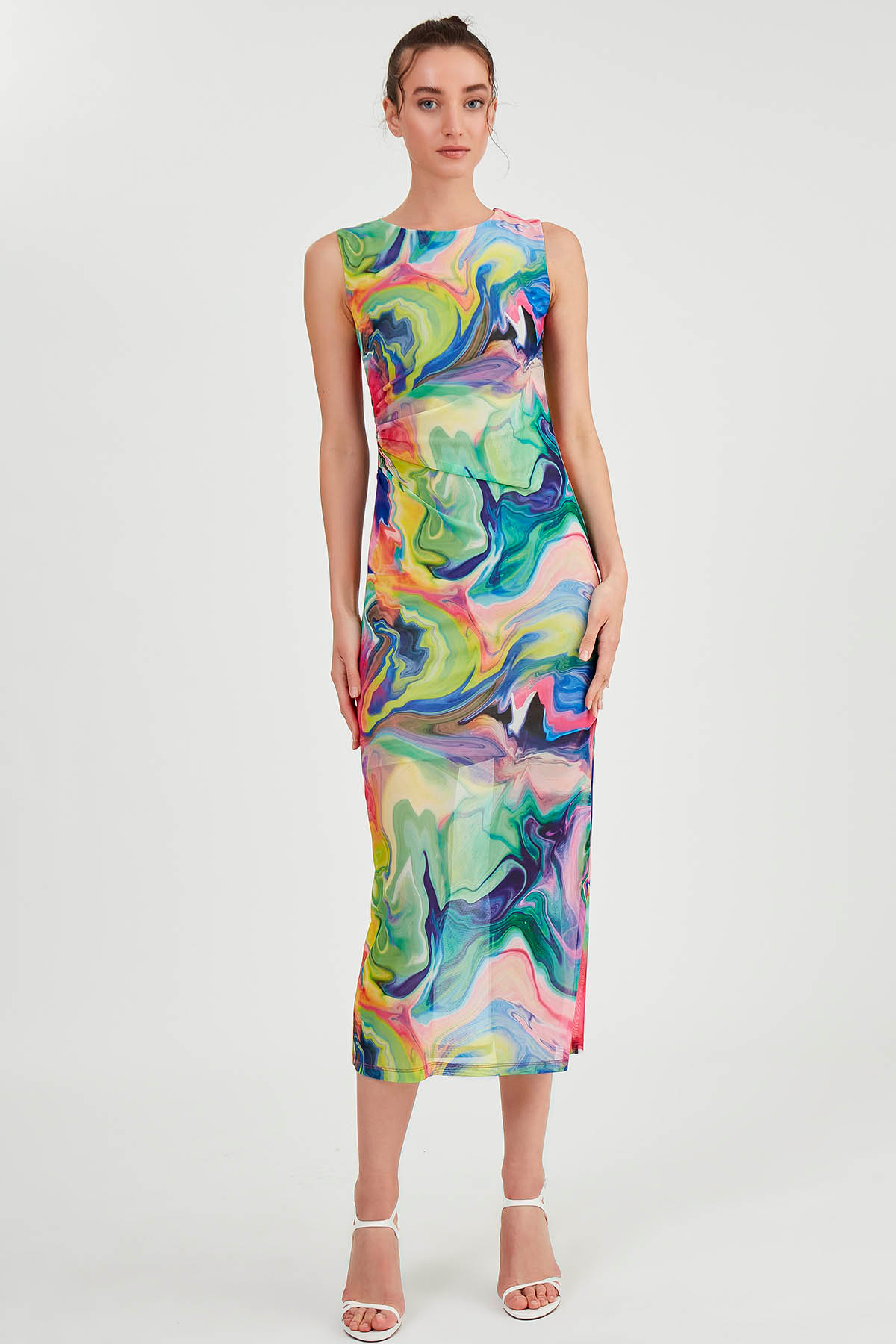 ميزات فستان طويل من التول برباط منقوش من Vitrin
