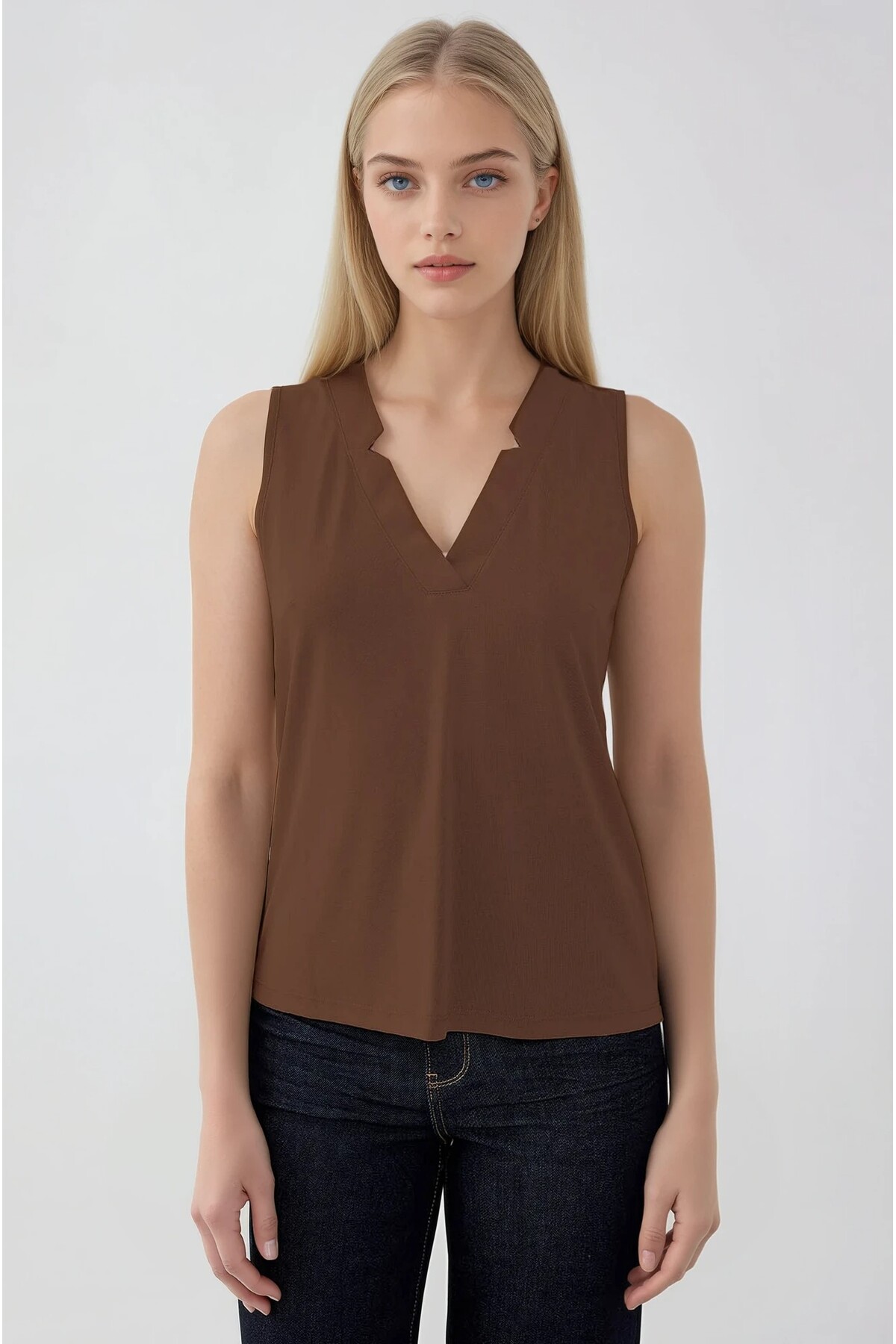 ميزات بلوزة برقبة على شكل حرف V بدون أكمام من Vitrin