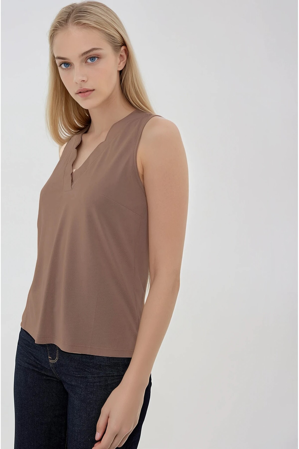 ميزات بلوزة برقبة على شكل حرف V بدون أكمام من Vitrin