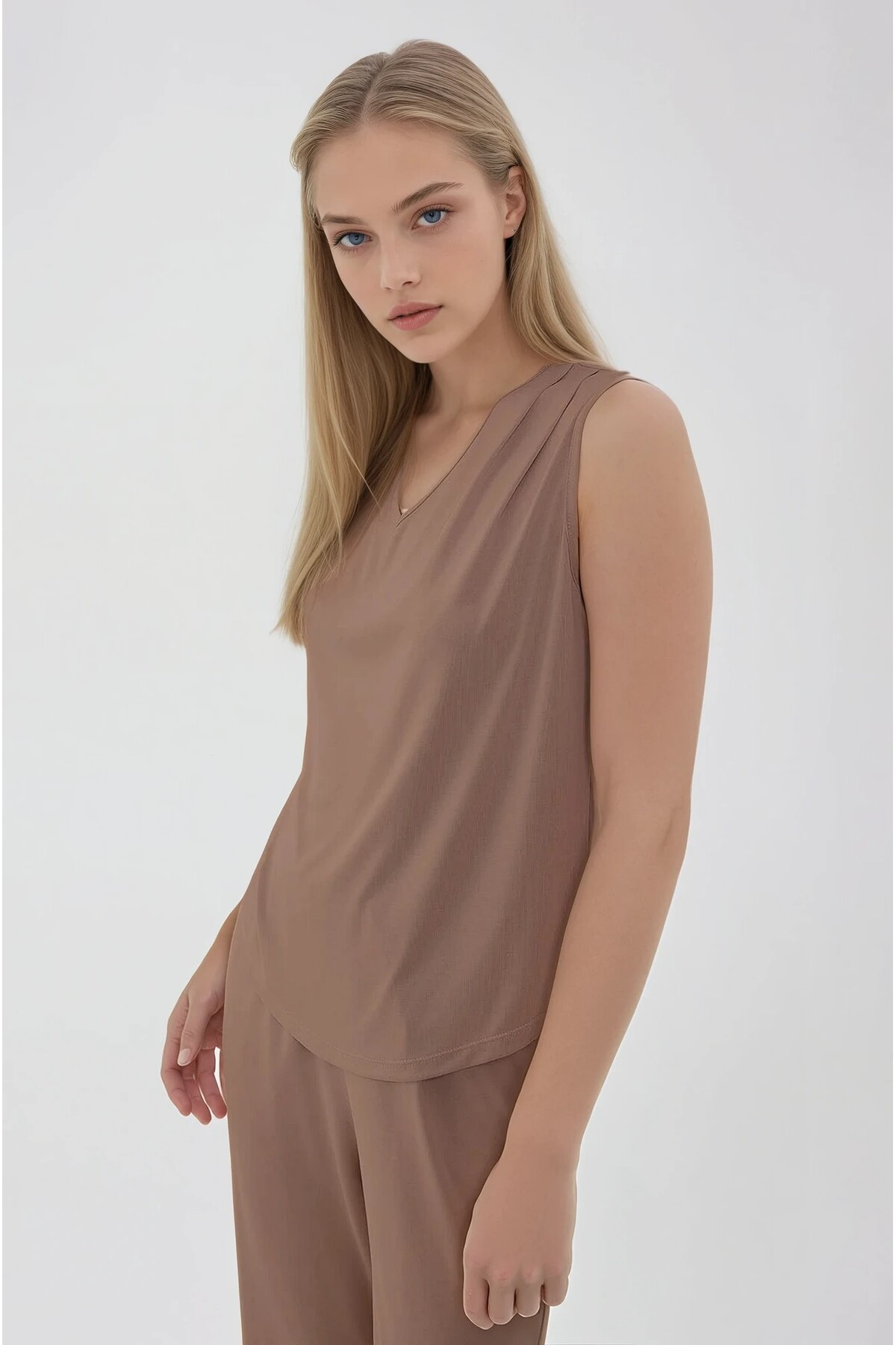 ميزات بلوزة بياقة على شكل حرف V وأكتاف مطوية من Vitrin