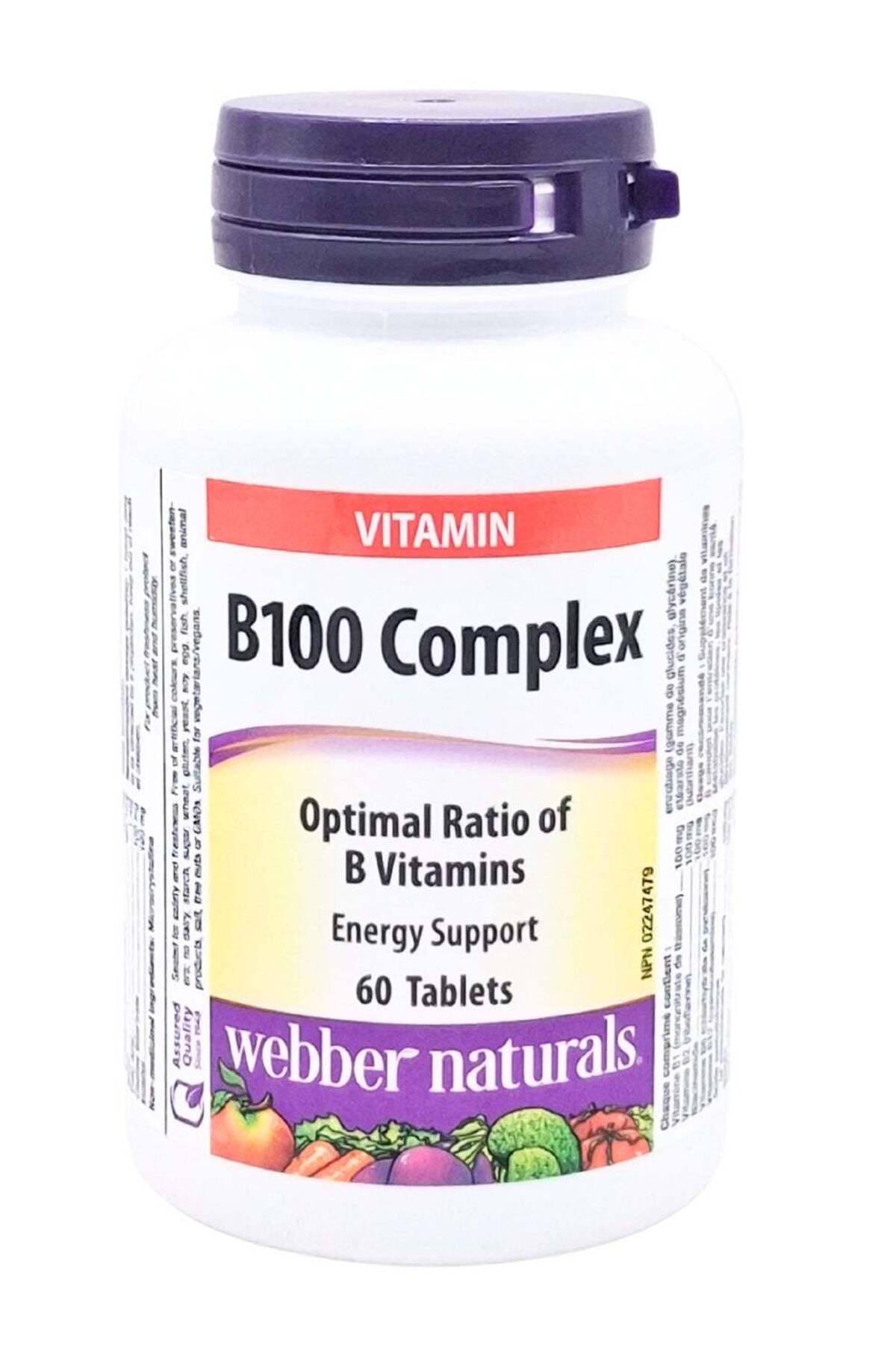 ميزات أقراص فيتامين ب100 المركب بتركيز 100 ملغ، 60 قرصًا من webber naturals