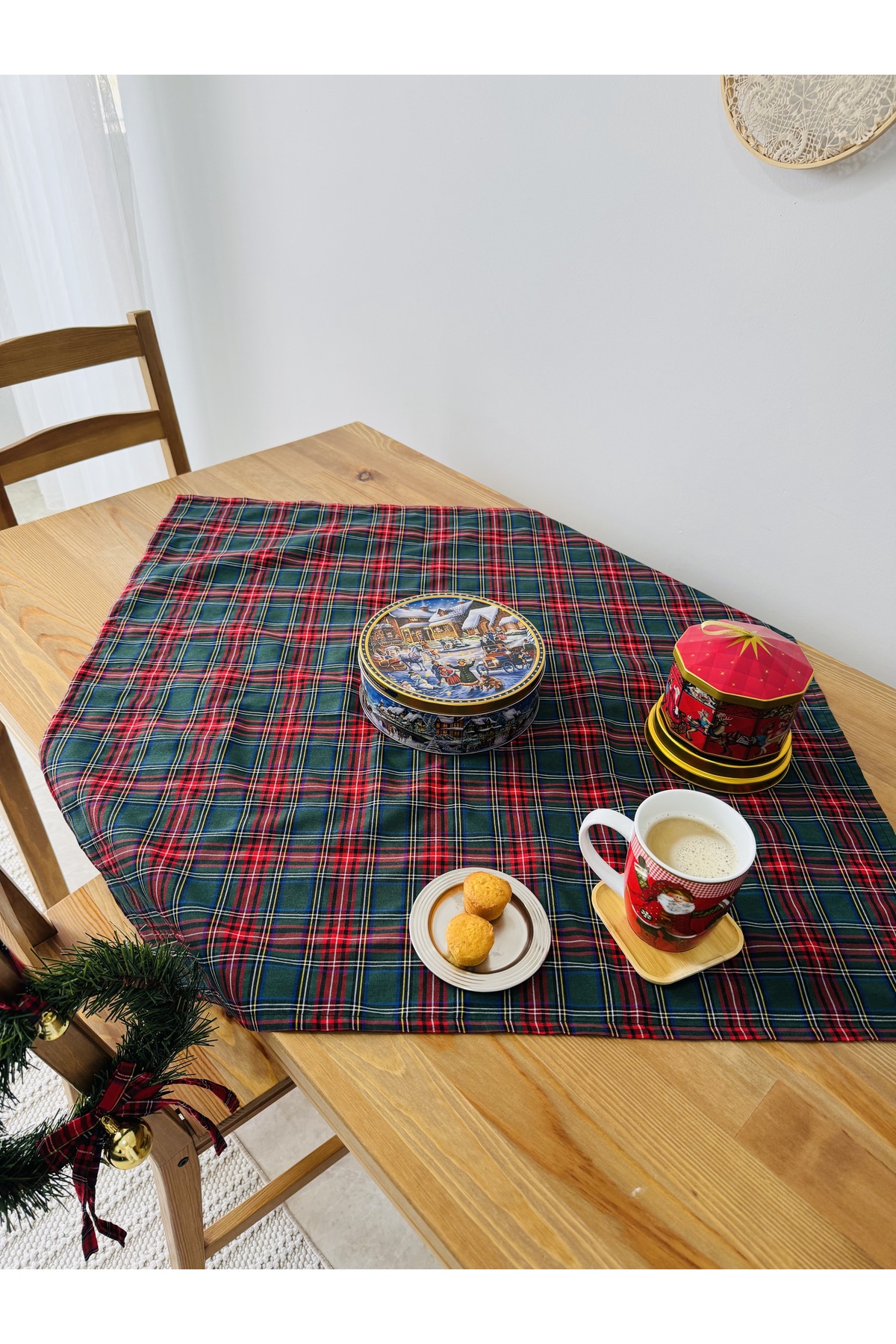 ميزات مفرش طاولة منقوش باللون الأخضر/نمط اسكتلندي مقاس 80×80 من White Alamode
