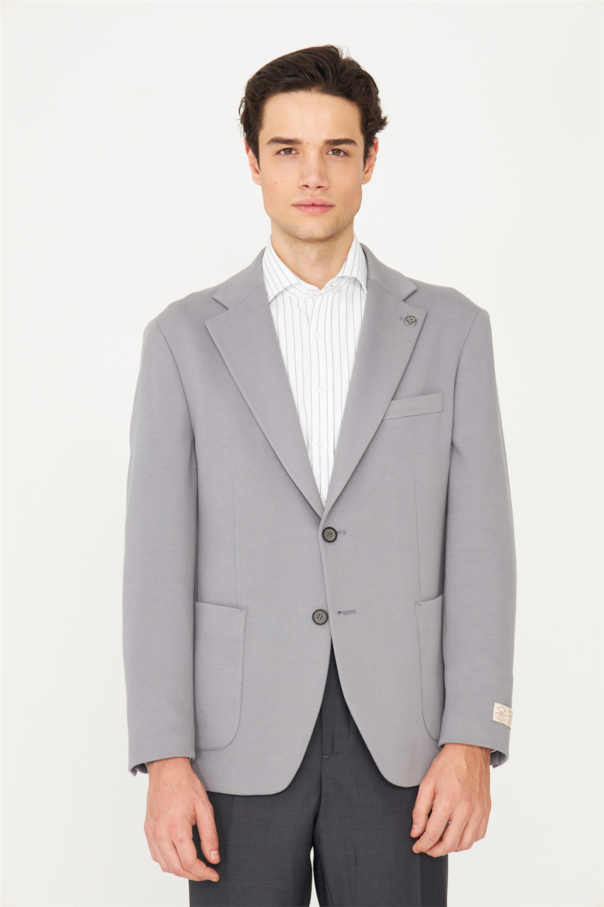 ميزات سترة بليزر باللون الرمادي الكلاسيكي من White Stone